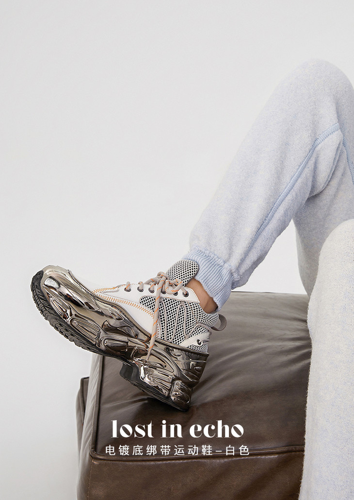 电镀底绑带运动鞋白色