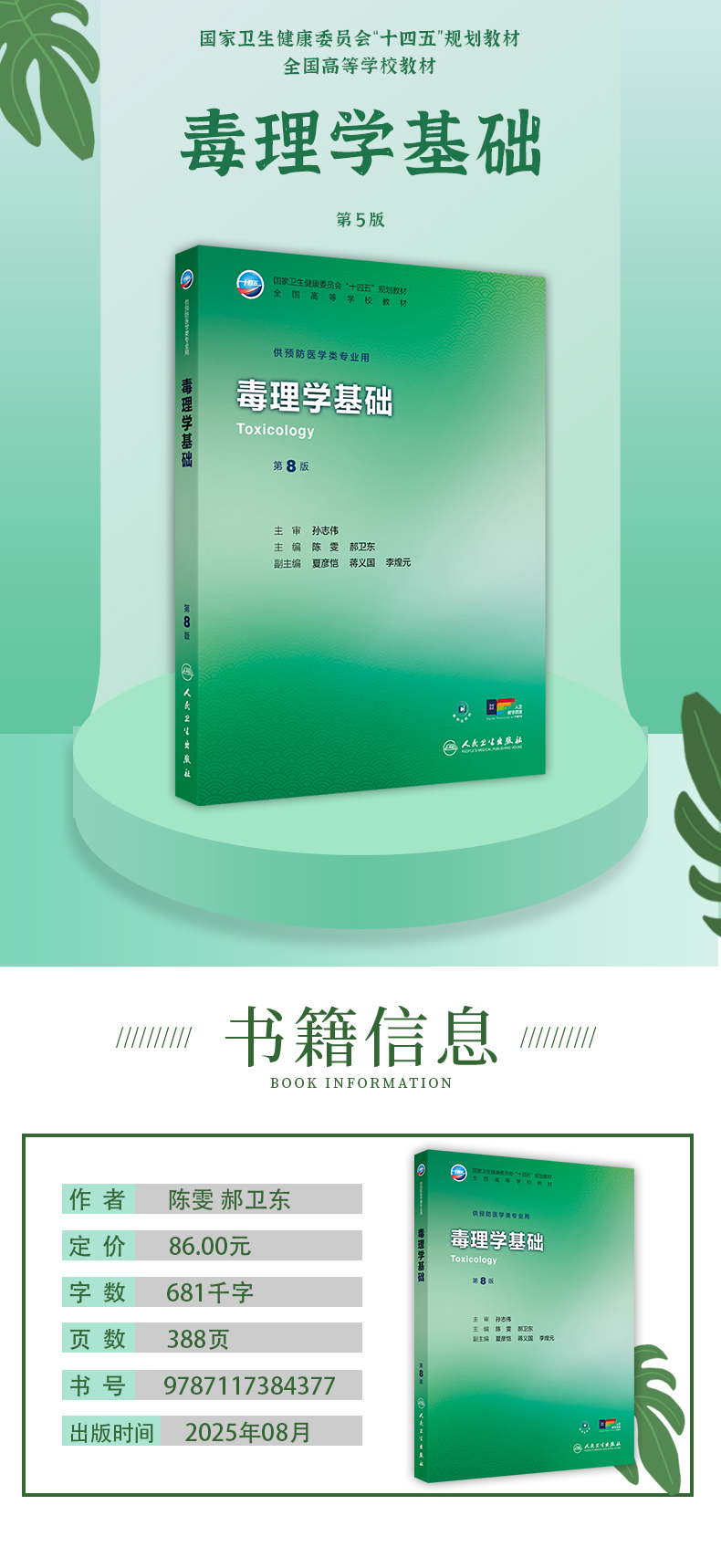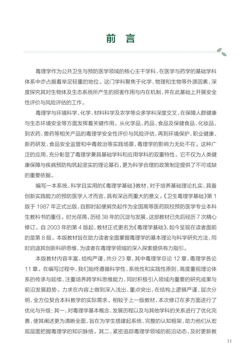 毒理学基础 第8八版 十四五规划教材全国高等学校教材 陈雯 郝卫东 主编 供预防医学类专业用 9787117384377 人民卫生出版社