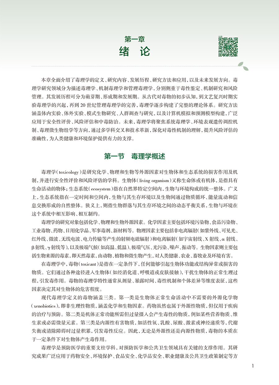 毒理学是公共卫生与预防医学的主干学科,也是医学和药学重要的基础学科。新版教材旨在介绍毒理学的基本理论和转化应用,以基本原理为核心,实验技术为支撑,系统、全面、准确地阐述毒理学基本理论、基本知识和基本技能。教材重点介绍毒理学基本概念、外源环境因素对生物机体的损害作用与机制,以及外源化学物的风险评估和风险管理的方法与原则等。在掌握基础理论知识的同时,了解现代毒理学的重要发展方向和趋势。通过实验技术方法的介绍、基本的实验设计和解析等方式,提升运用毒理学理论和方法分析和解决实际问题,力求培养基础理论扎实、具备创新实践能力的预防医学人才。
