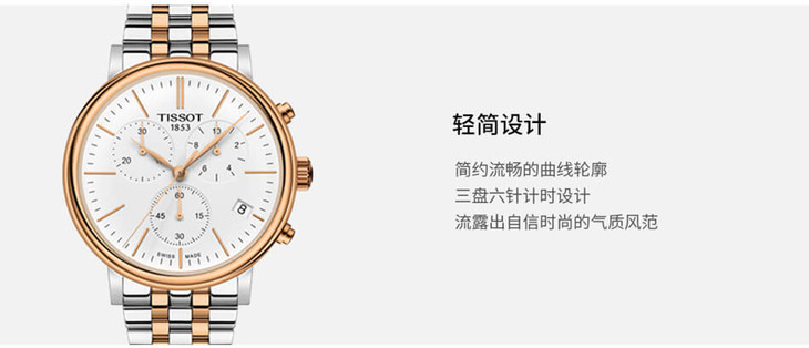 镜面 材质 | 蓝宝石水晶玻璃 | 表盘 | 精钢 5N玫瑰金表壳 白色表盘 大三针 日期显示 三表盘 计时码表 条字刻度时标 |