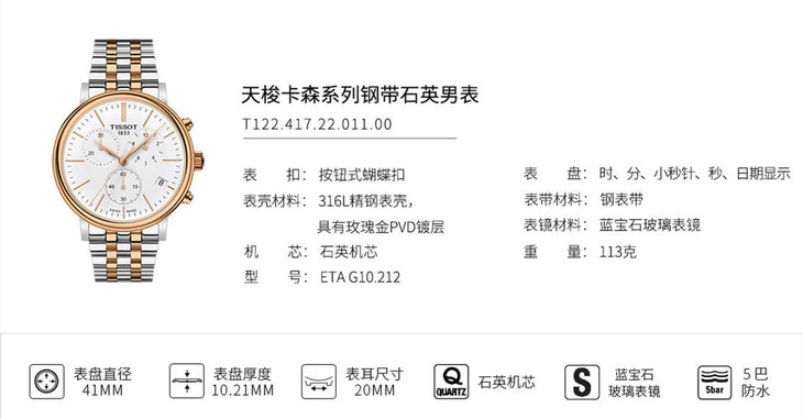 | 品牌 | 天梭 TISSOT | 型号 | T122.417.22.011.00 |