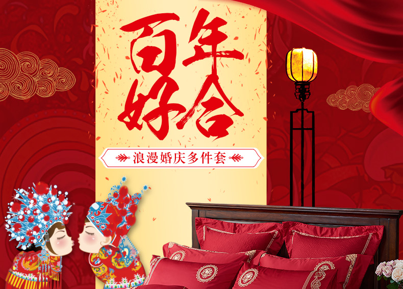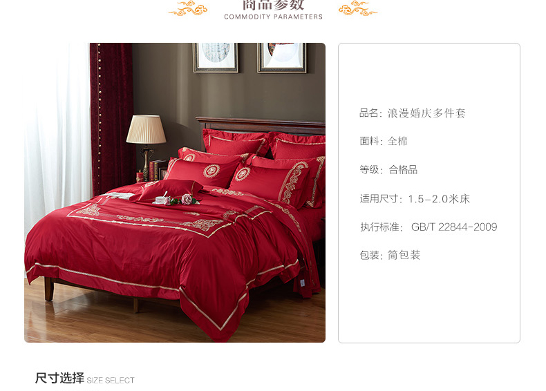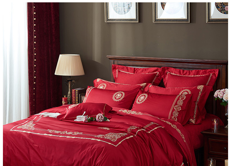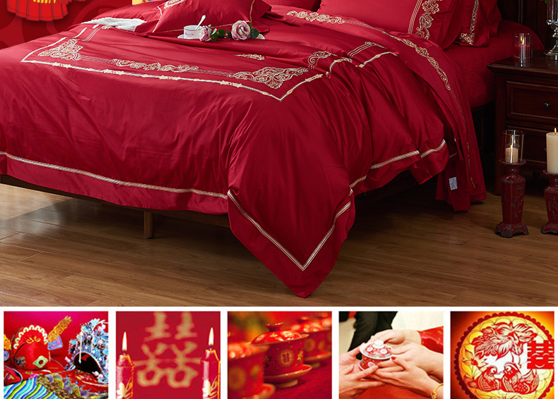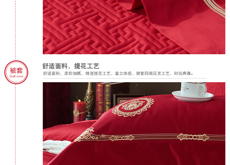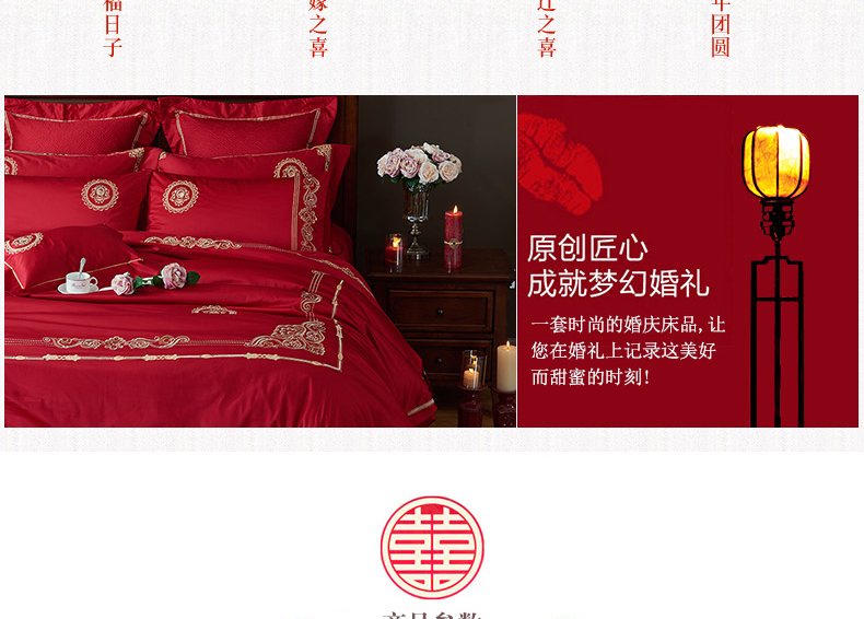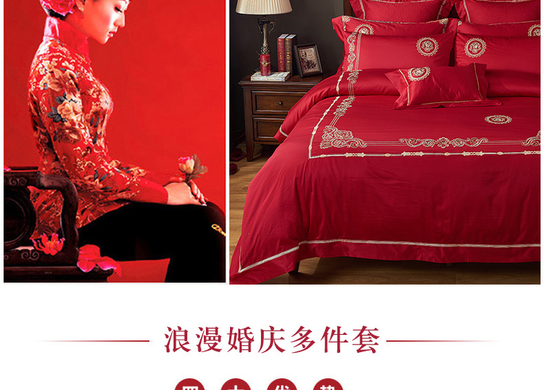 【品牌直营】【婚庆系列 真爱一生】奢享100支刺绣匹马棉婚庆套件四件套六件套