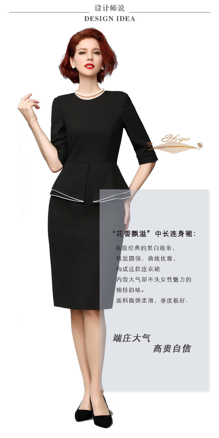 【特惠】YIQU丨“花香飘溢”中长连身裙(黑白线条)PT