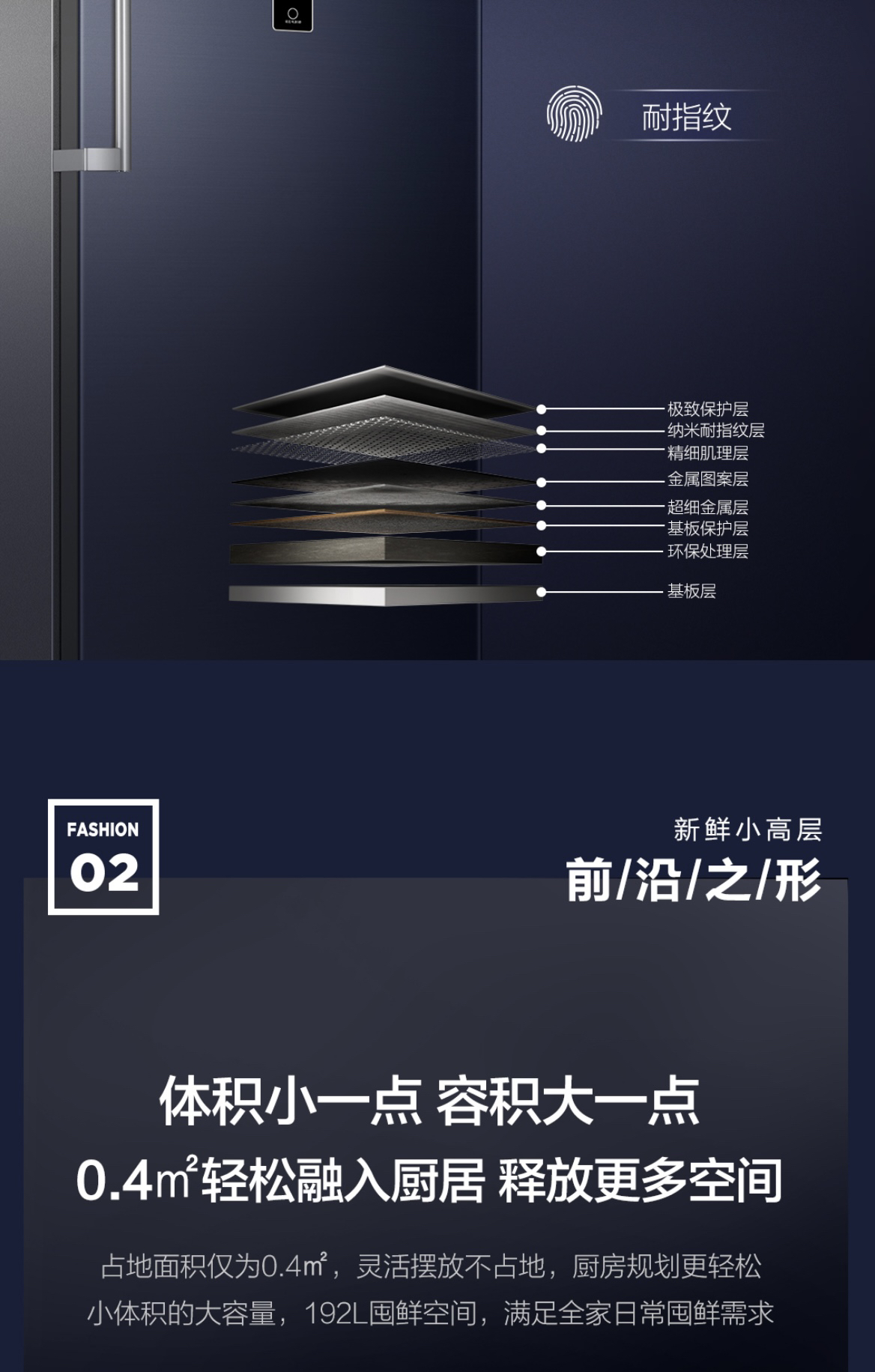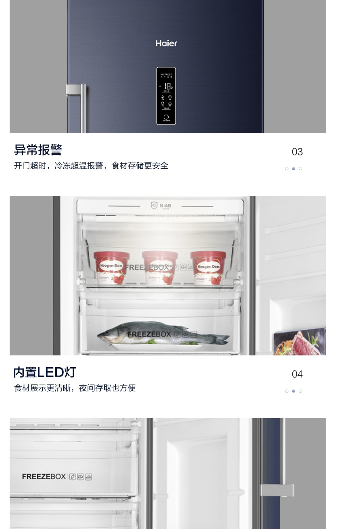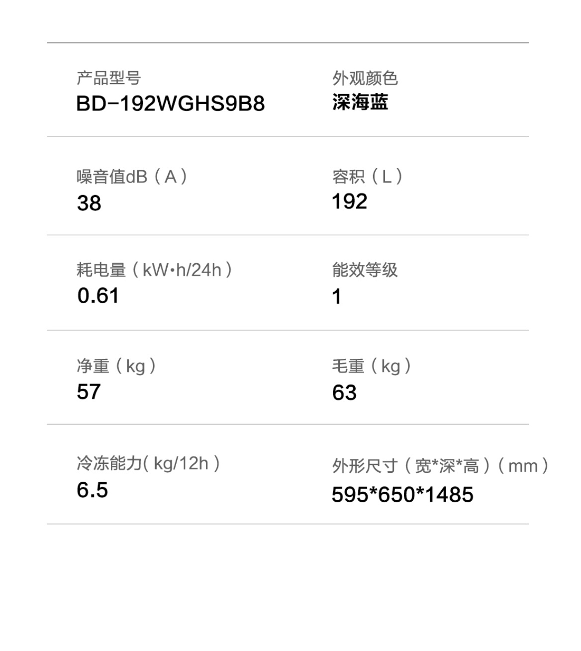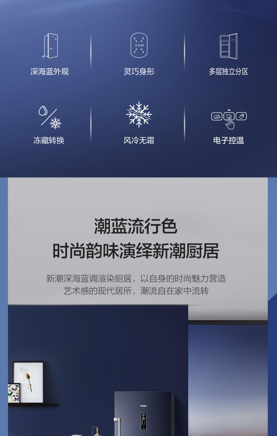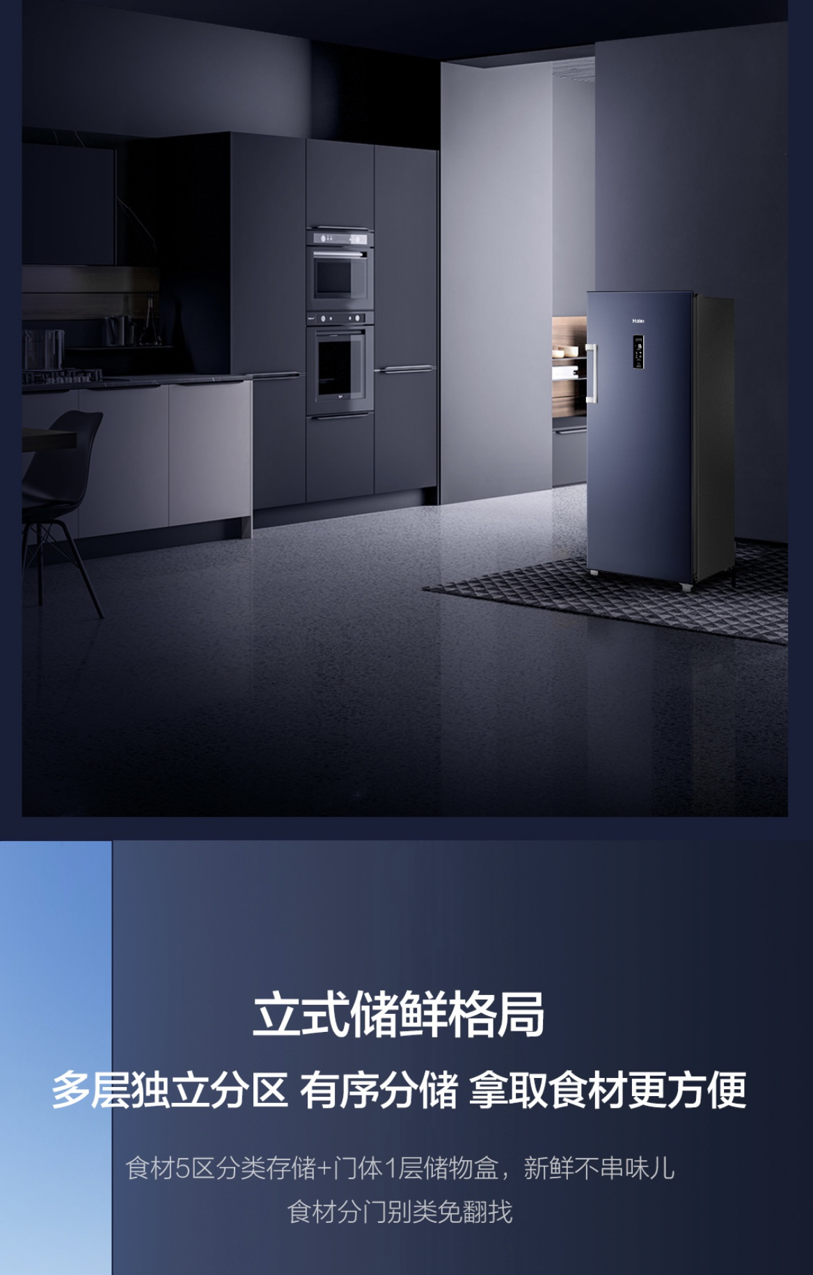 海尔(Haier)立式冷柜BD-192WGHS9B8深海蓝