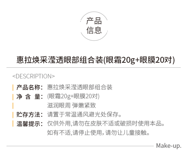 惠拉焕采滢透眼部组合装(眼霜20g+眼膜20对)(241061)