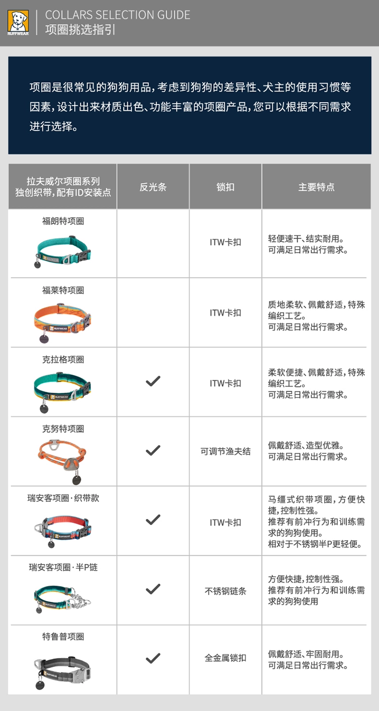 拉夫威尔瑞安客狗狗项圈半P链ruffwear脖套大小型犬颈绳宠物用品