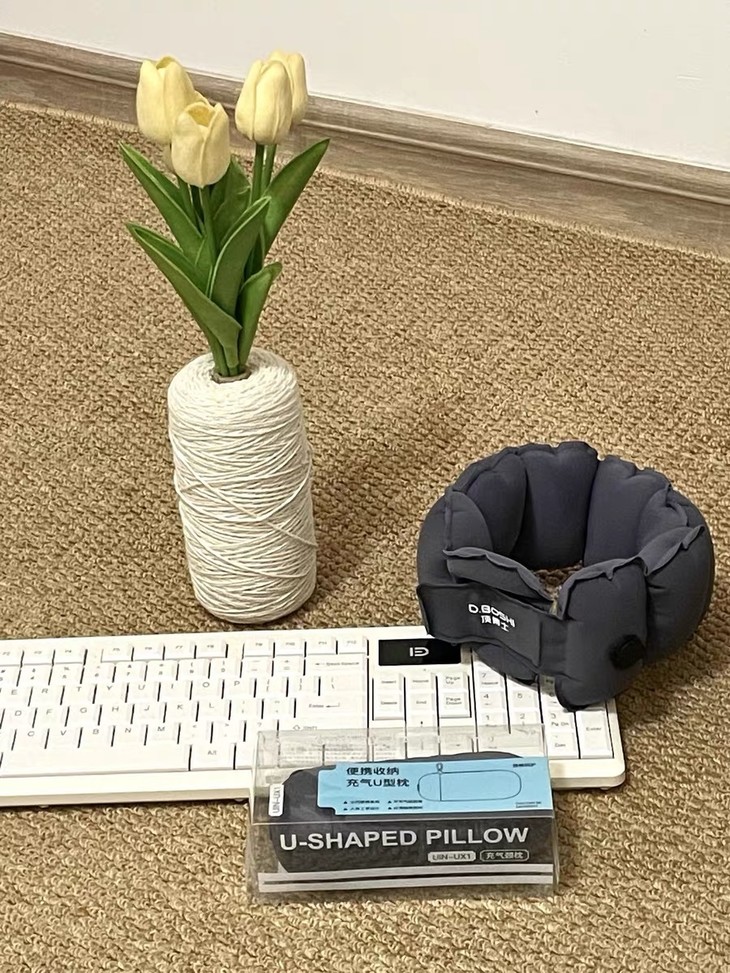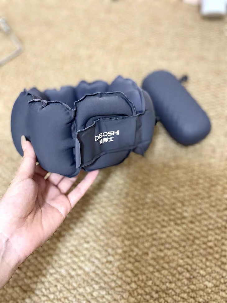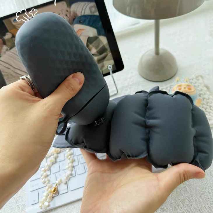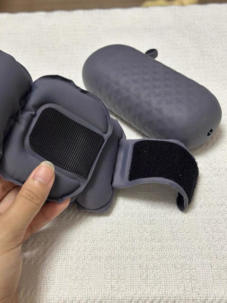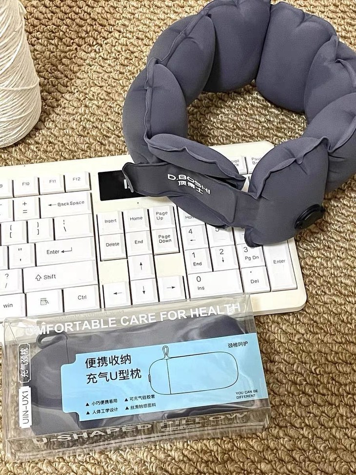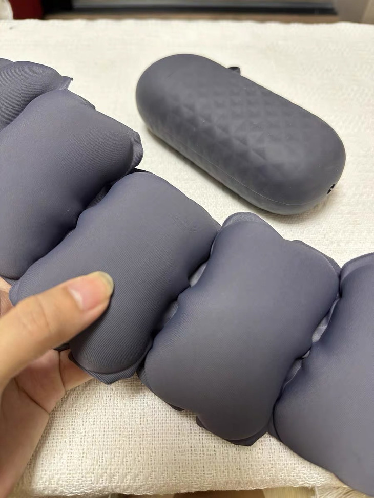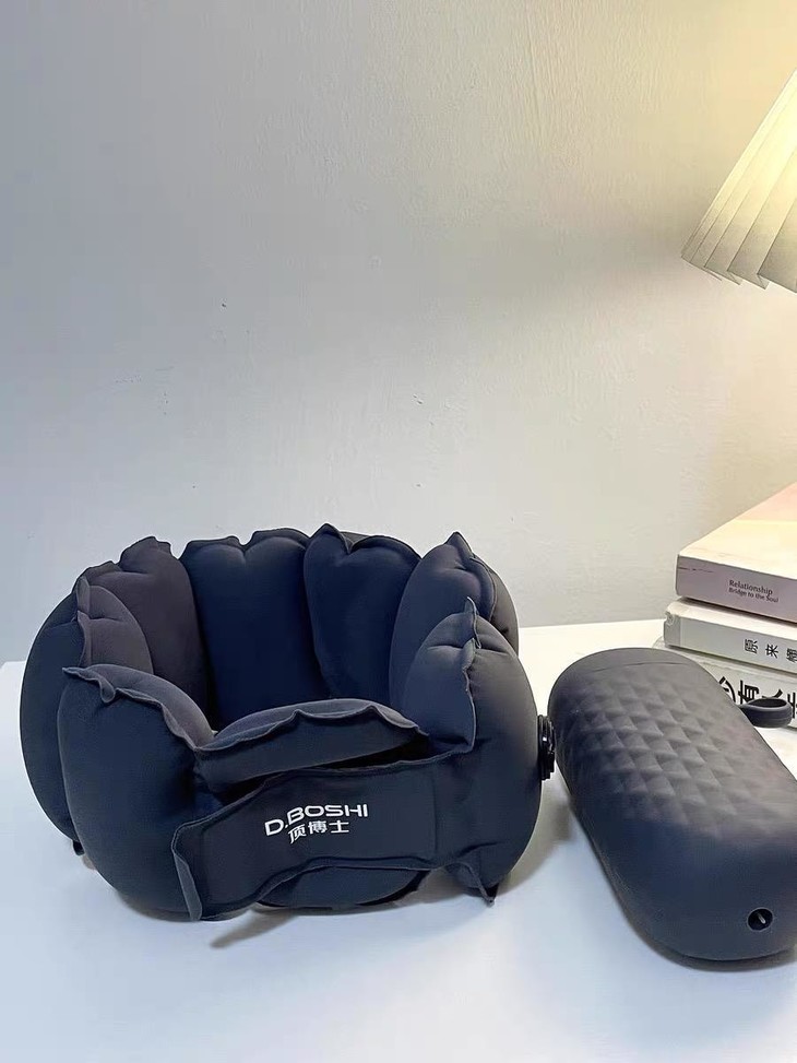 多场景适用 - 差旅神器:登机前充气,下机放气收纳,解决长途飞行颈椎疲劳。 - 户外应急:露营时可临时作为腰靠、垫高枕头。 - 办公午休:折叠状态存放抽屉,充气后支撑头部,避免趴睡手麻。