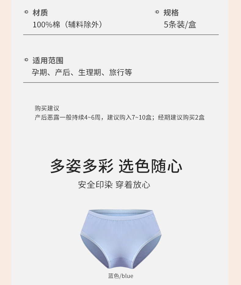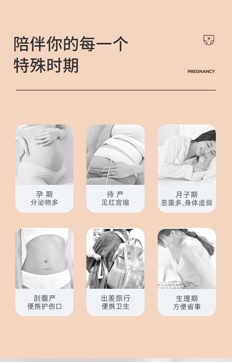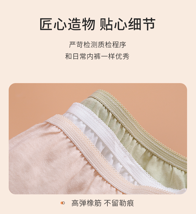 【特点】懒人福音,解放双手、干净卫生,差旅、姨妈期、孕期月子女性等都可穿!降解材质,穿完即扔。
