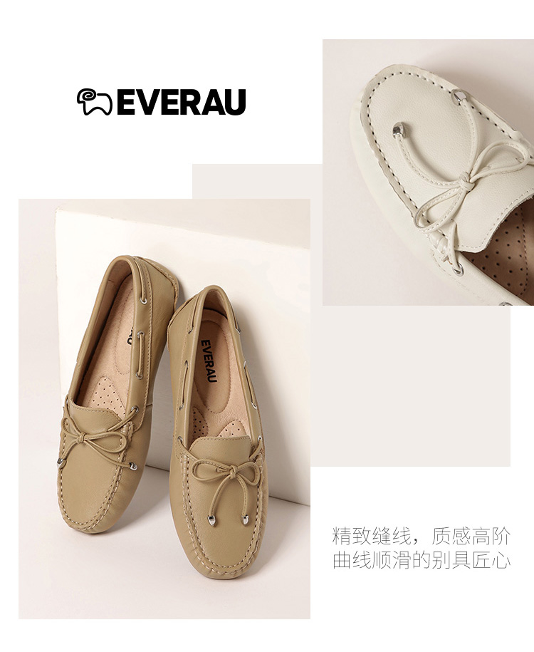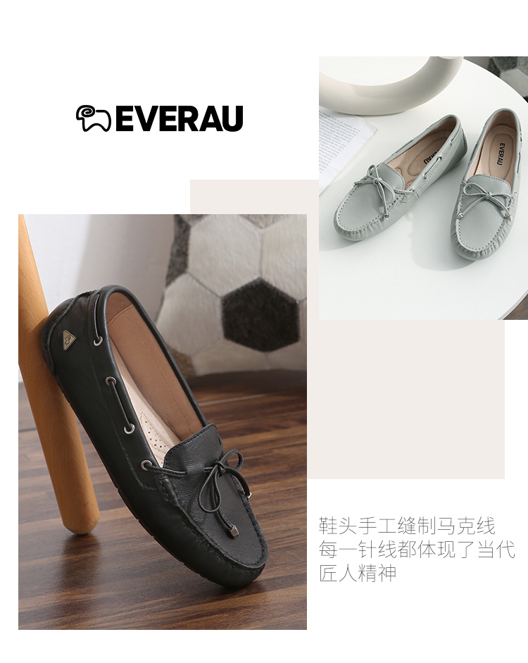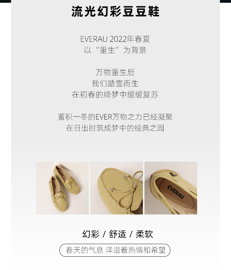 EVERAU多色可选豆豆鞋女春夏新款浅口单鞋一脚蹬厚底乐福鞋EA1015