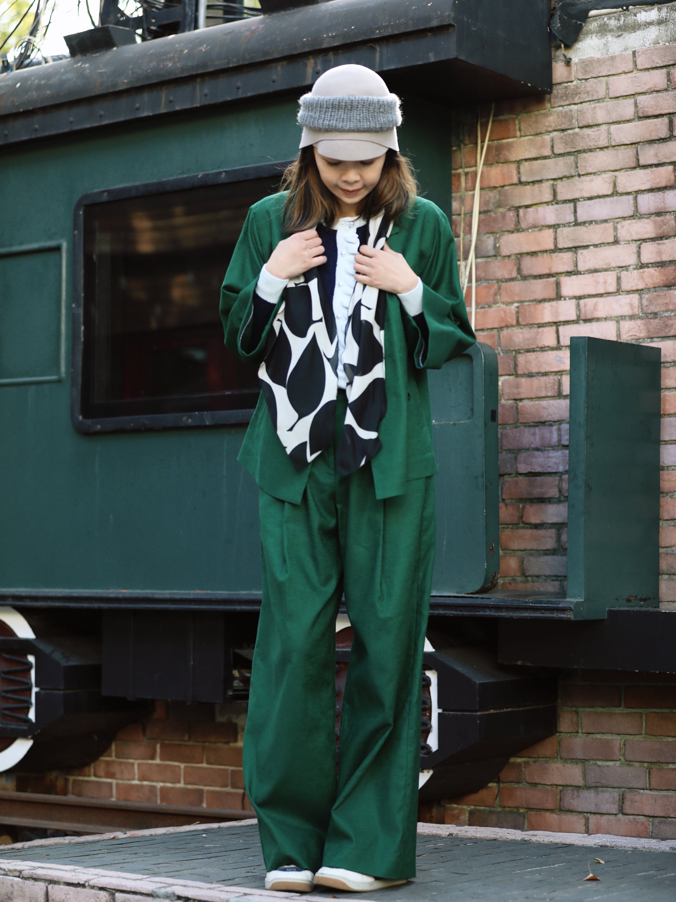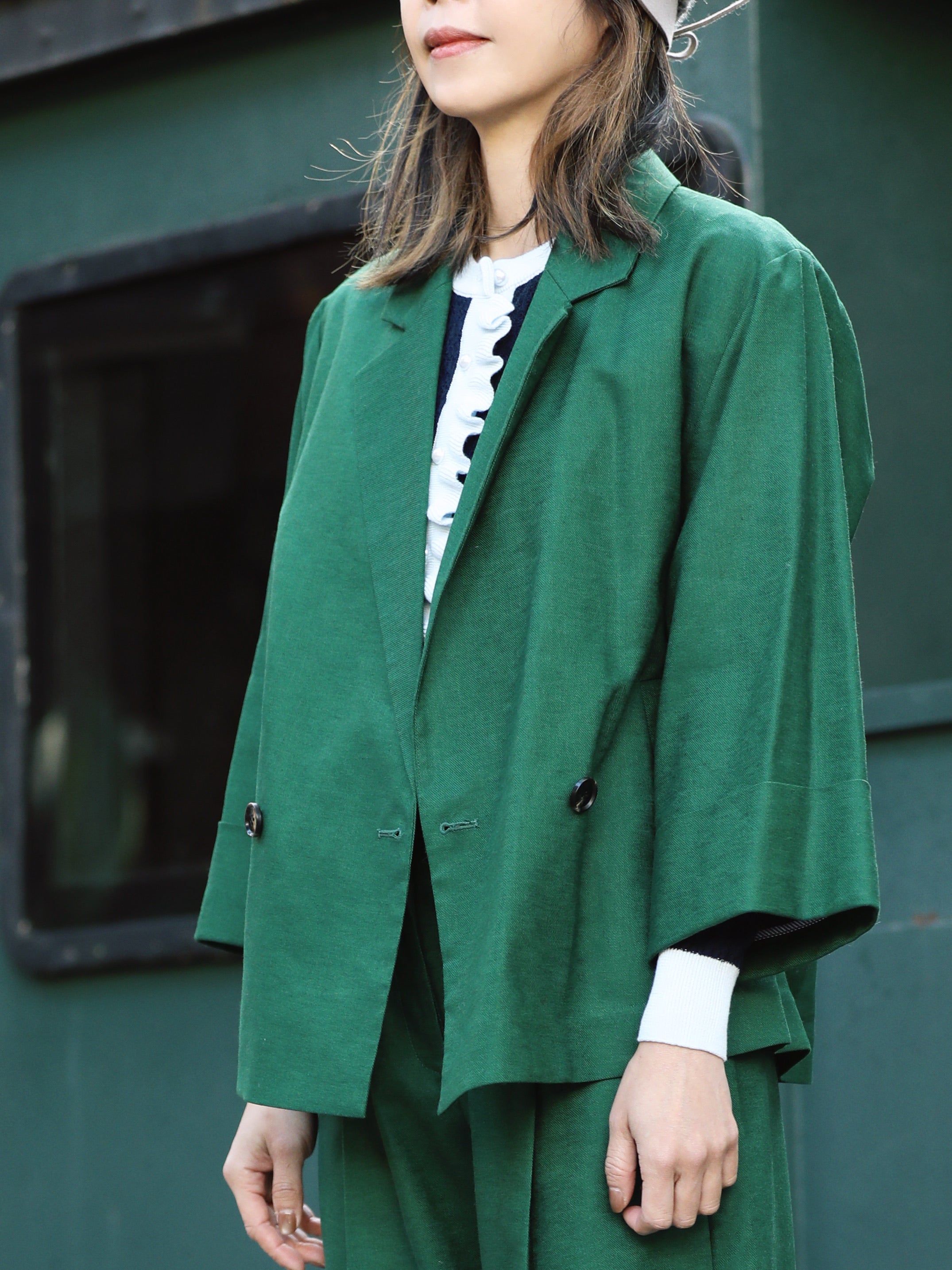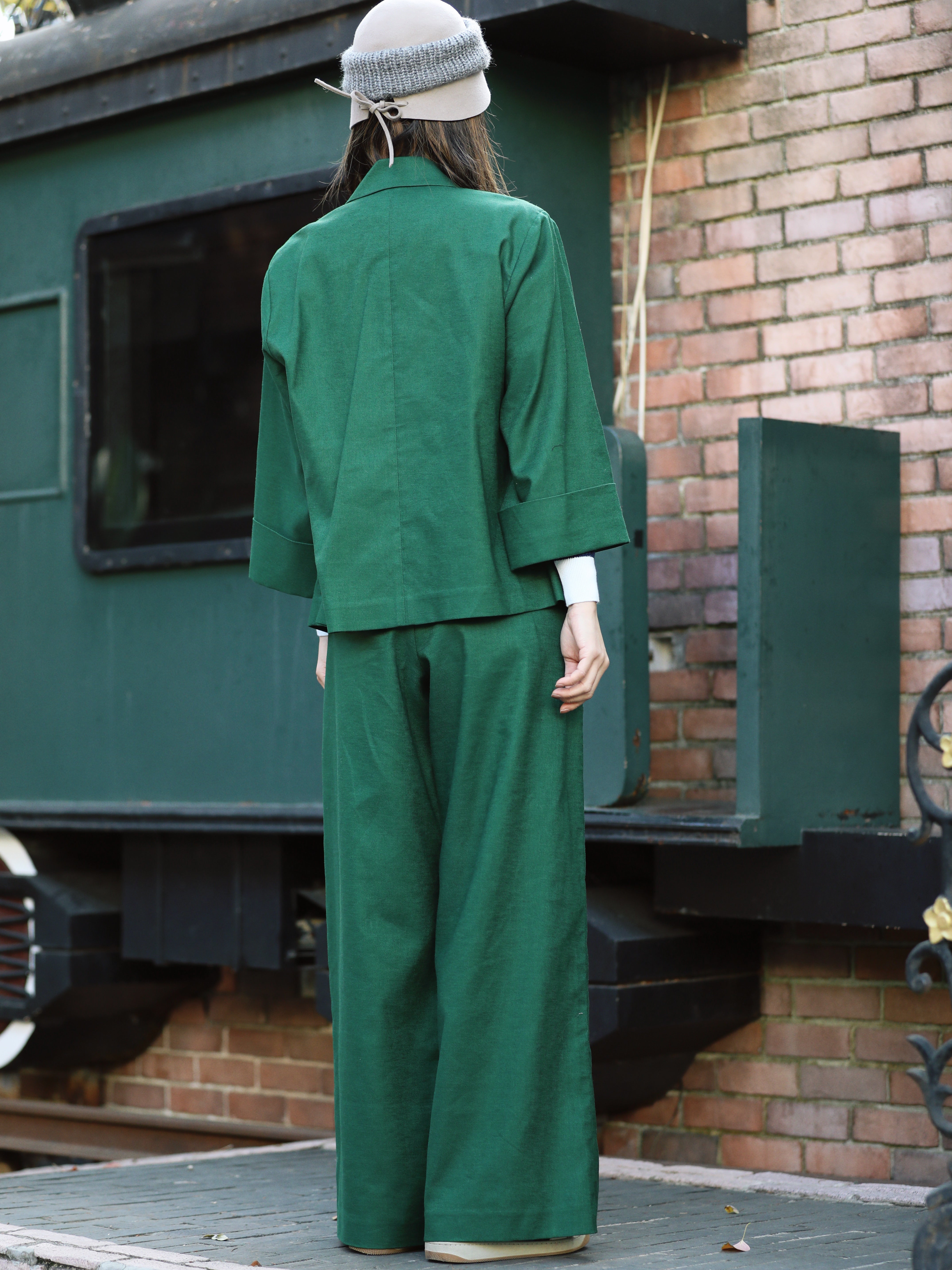 TYNVIE 纯亚麻茧夹克(配有花纹丝巾) - 森林绿