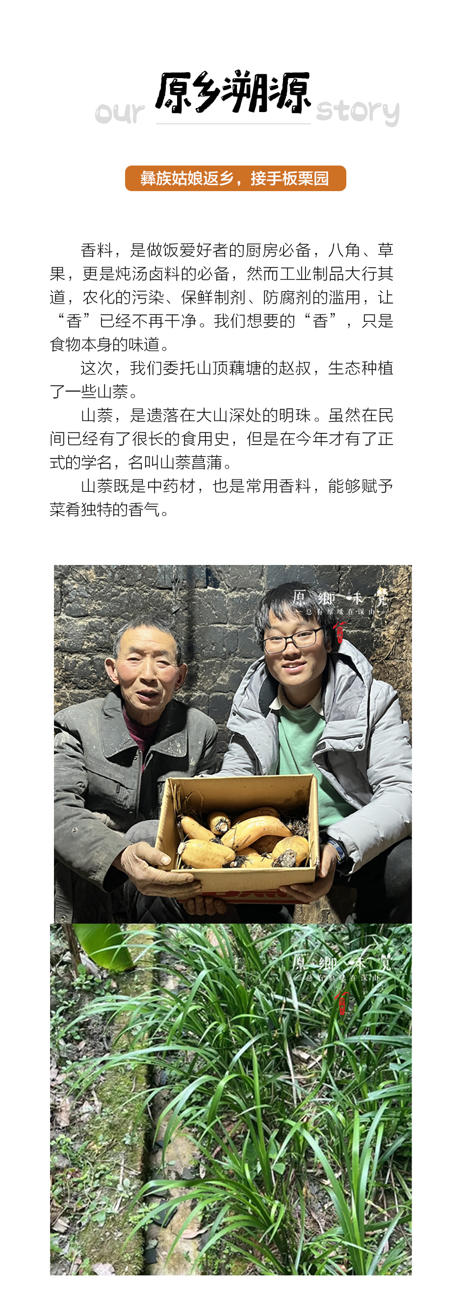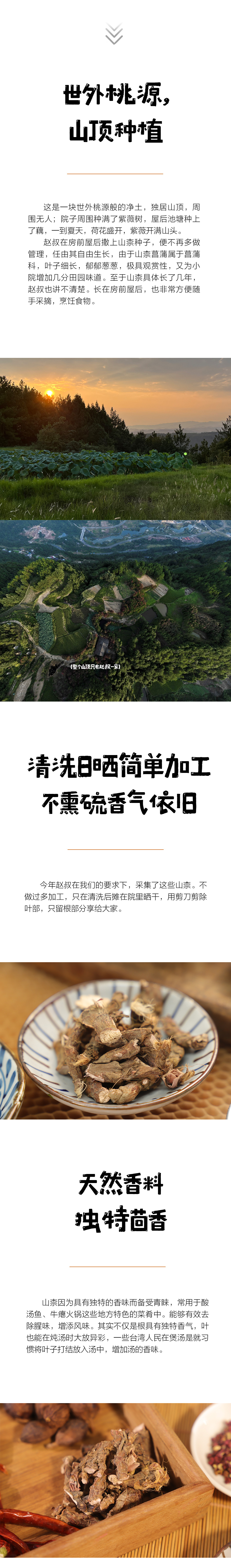 - 【总有原味在深山】——原乡味觉,追寻自然的脚步,尊重土地与时令,我们翻山越岭,深入原乡,回到食材的原籍,守候食味的初相,让我们再一次发现人与食物的美好关系!物尽其用,方为惜物,所有食材包装皆可重复利用