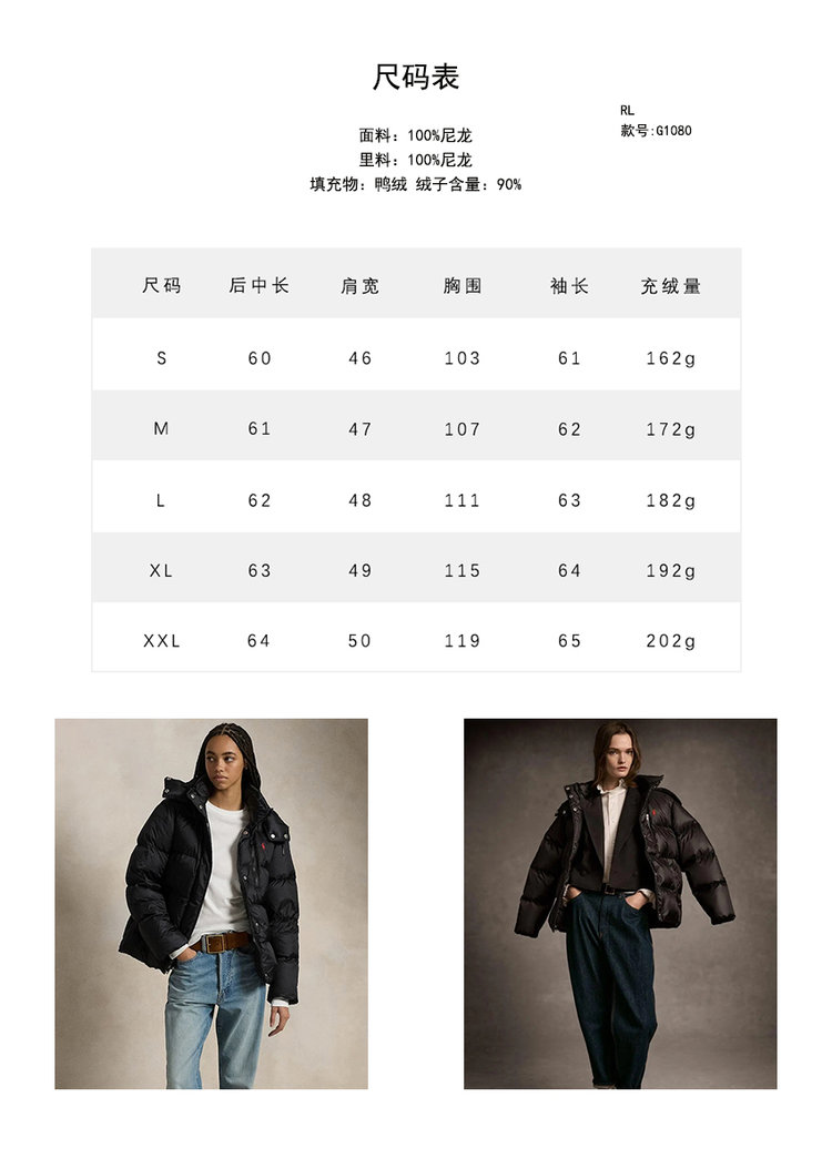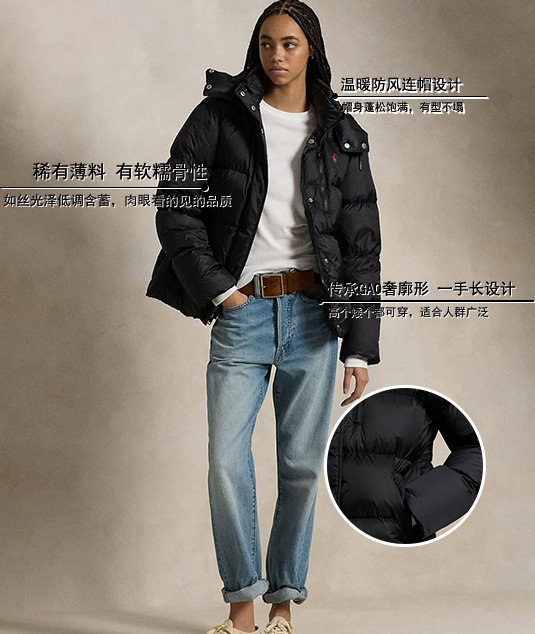 【高品质私服】【RL女士经典款宽松羽绒夹克】宽松H型,包容度絶佳,独特结构,防护升级G1080-CC【无标出货 介意慎拍】