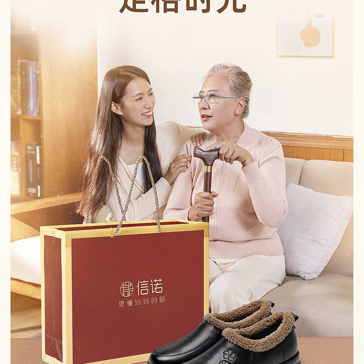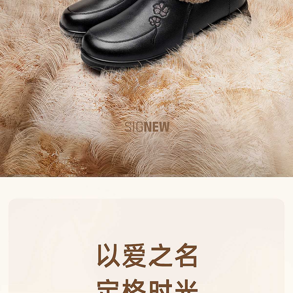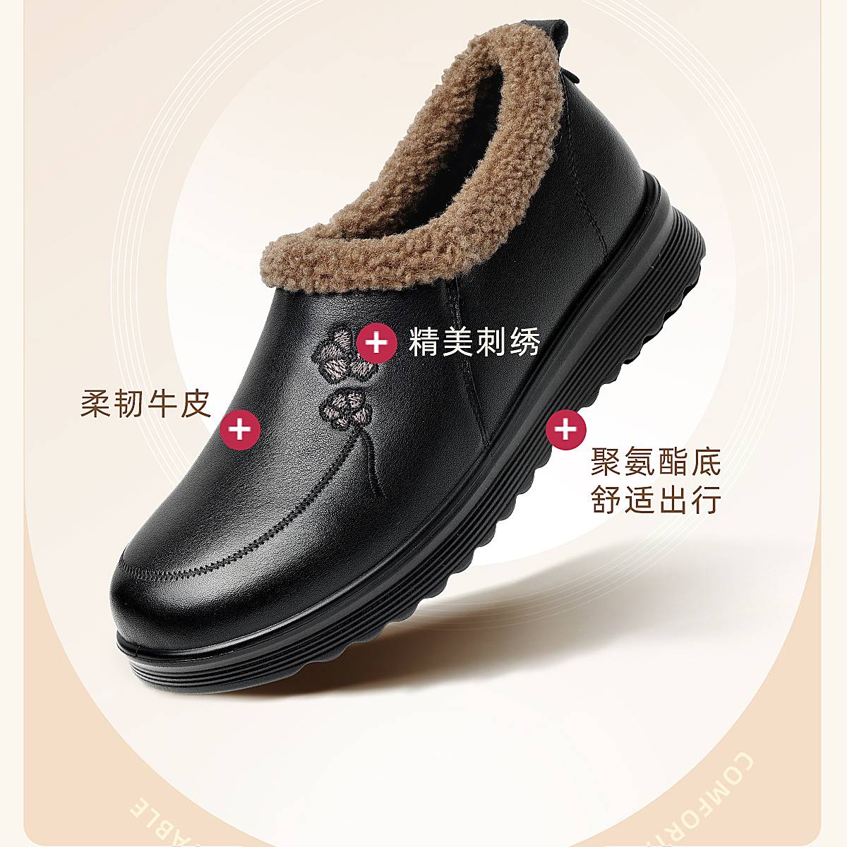 信诺真皮妈妈鞋加绒保暖高帮女鞋软底舒适中老年棉鞋2025冬季新款5M659-17H