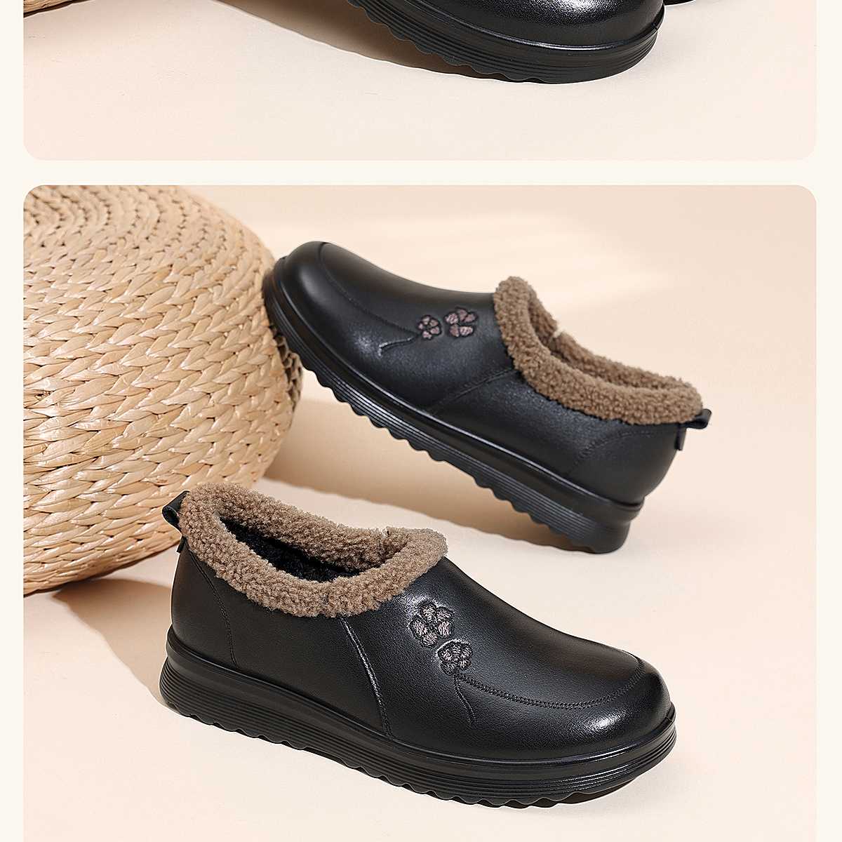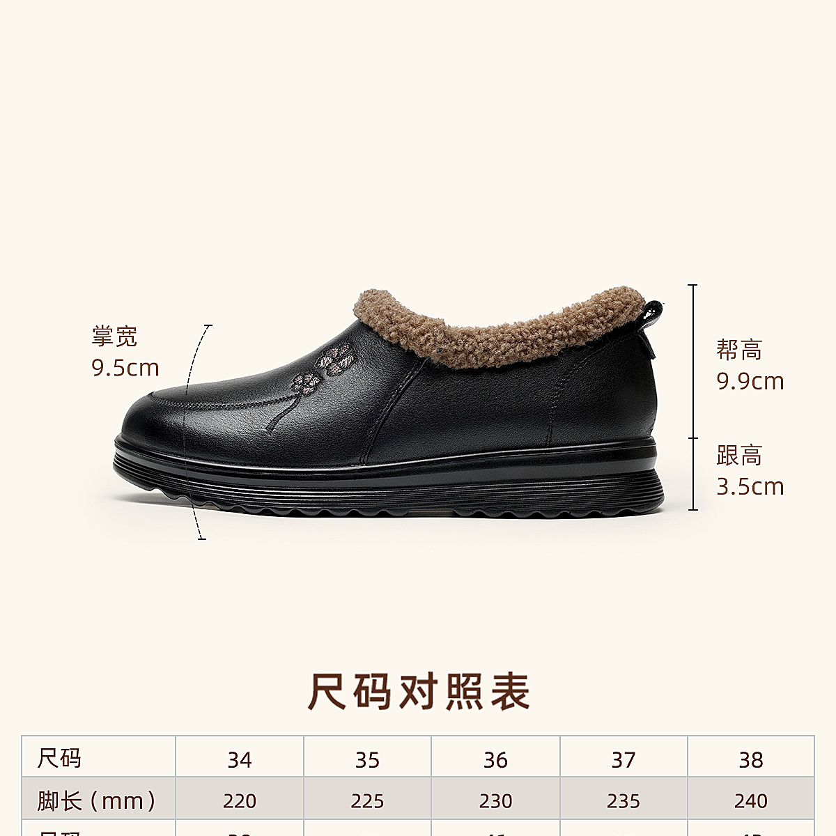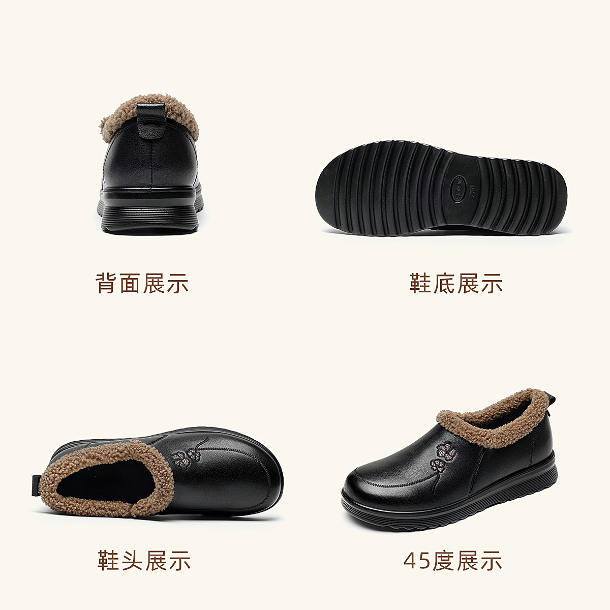 信诺真皮妈妈鞋加绒保暖高帮女鞋软底舒适中老年棉鞋2025冬季新款5M659-17H