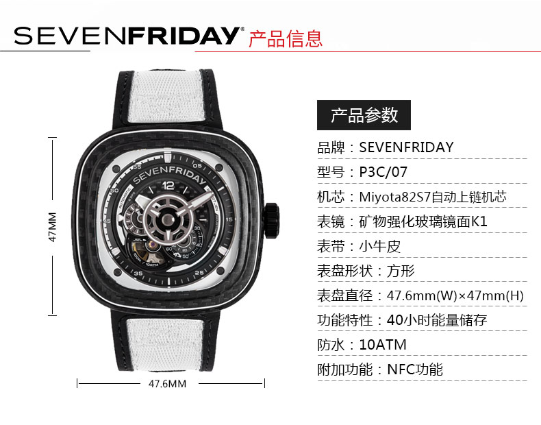 SevenFriday P系列皮带机械男表P3C-07 特别版