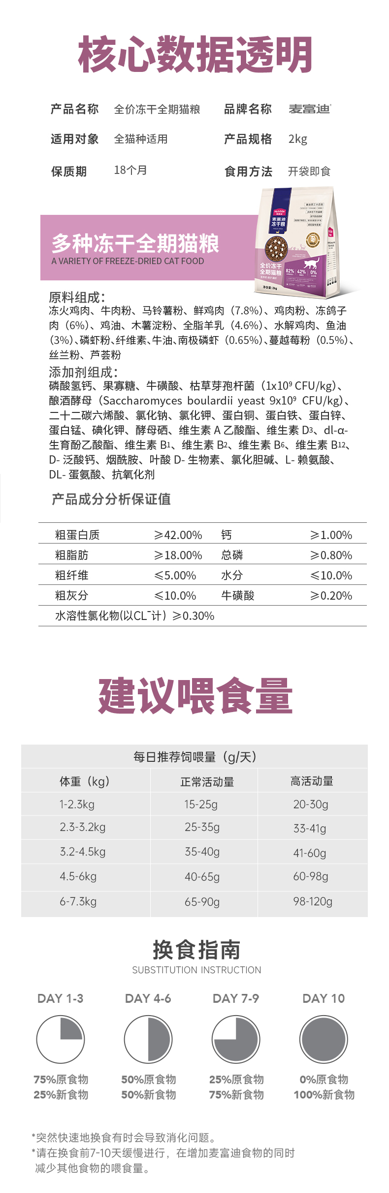 麦富迪猫粮天然无谷冻干三拼乳鸽子羊奶营养全期成猫幼猫奶糕2kg
