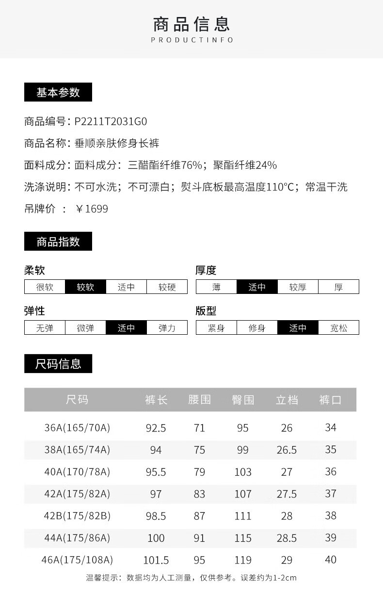 皮尔卡丹女装春季新款轻商务通勤休闲西服裤P2211T2031G0