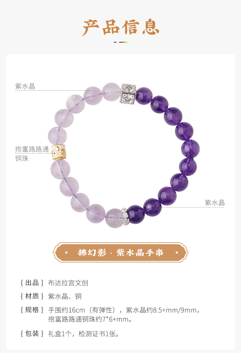 布达拉宫紫水晶铜财配件手串紫水晶白水晶珍珠手串多款可选