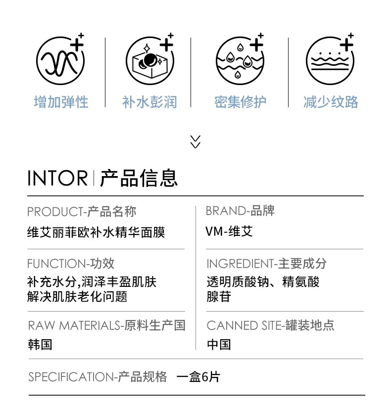 韩国 VM维艾 玻尿酸补水玻璃面膜 6片