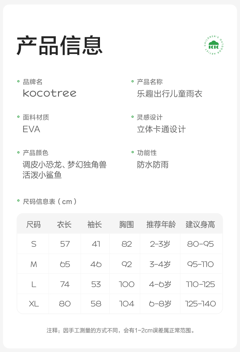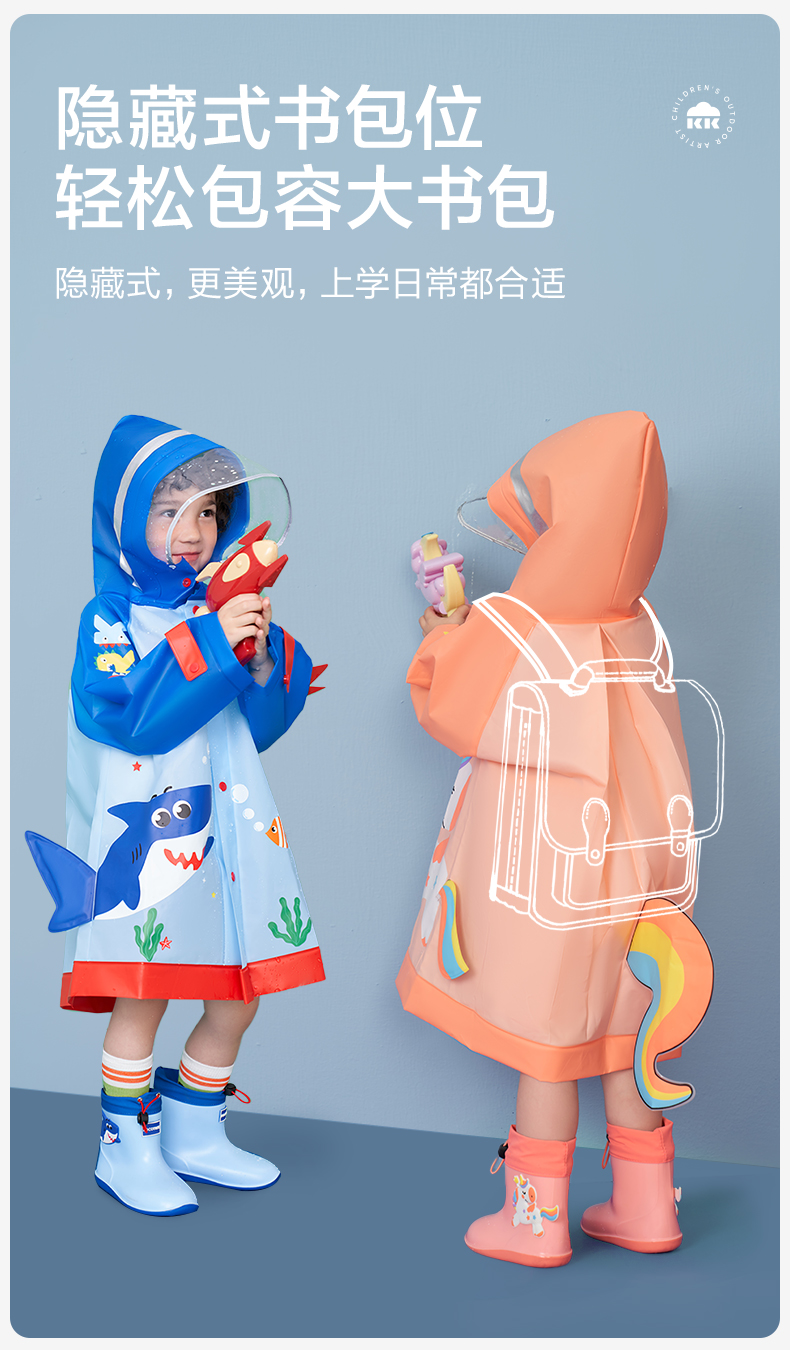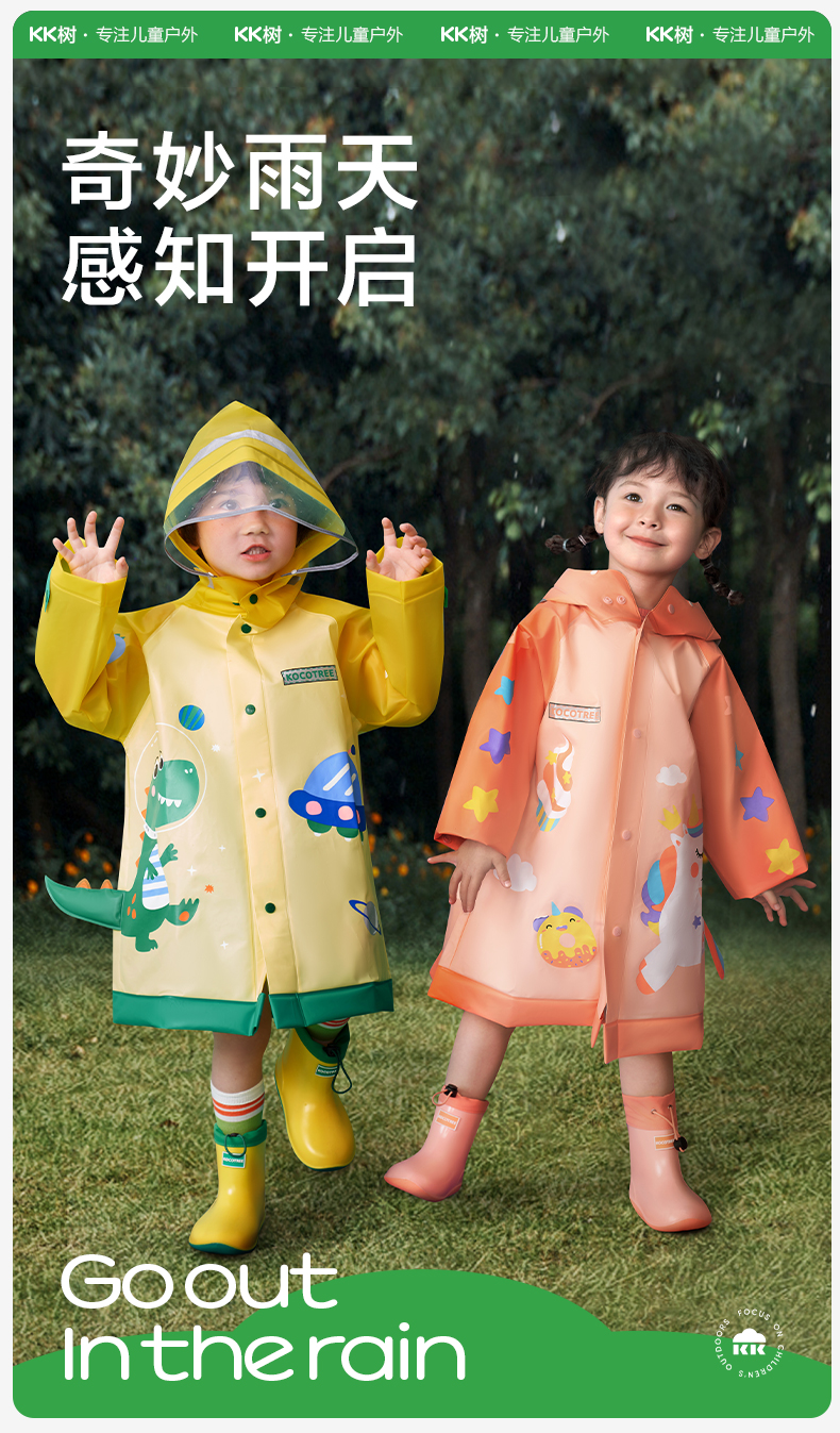 KK树儿童雨衣男童小童宝宝女小学生雨披幼儿园雨具分体斗篷式
