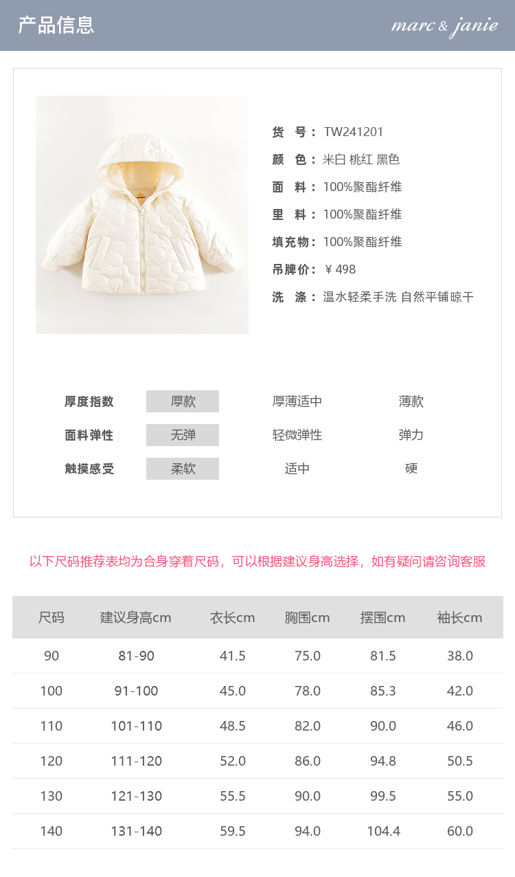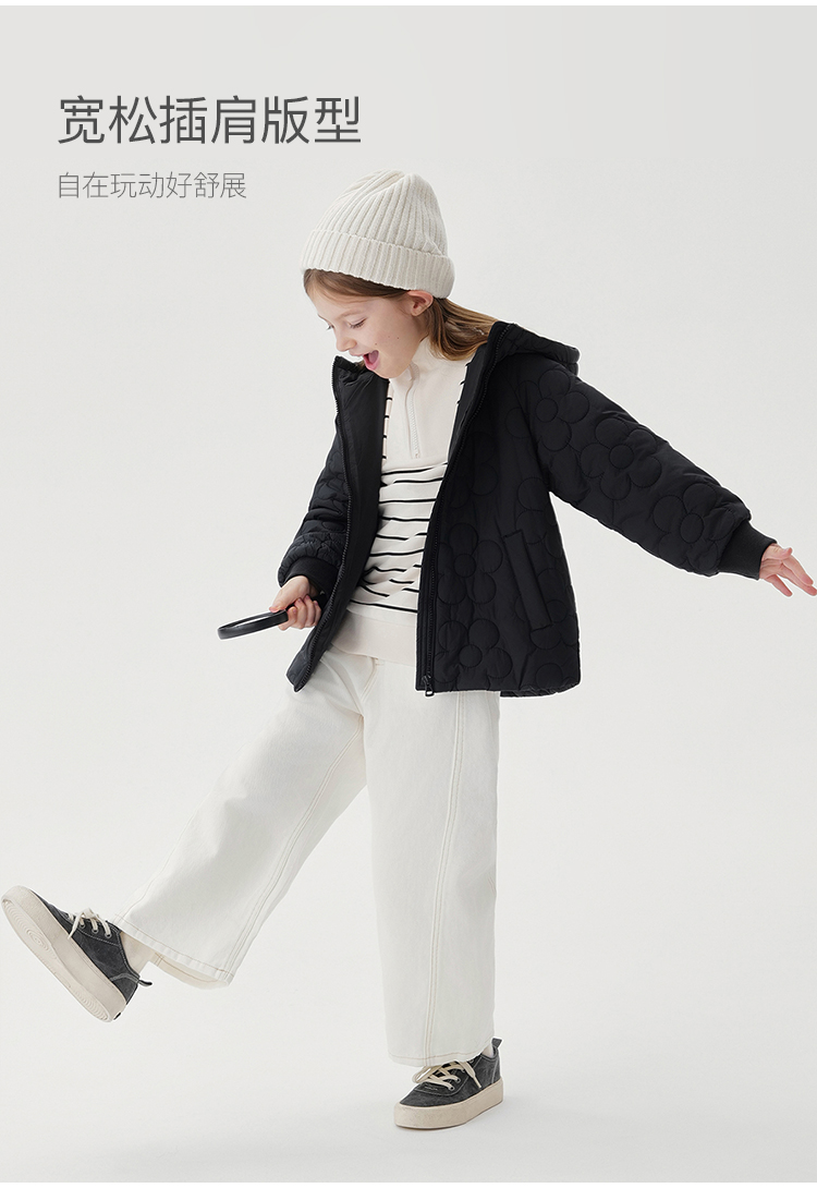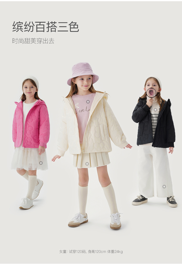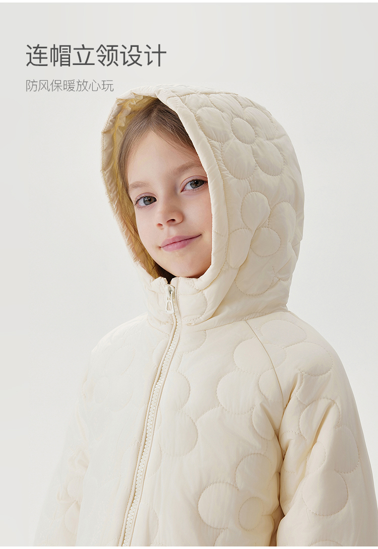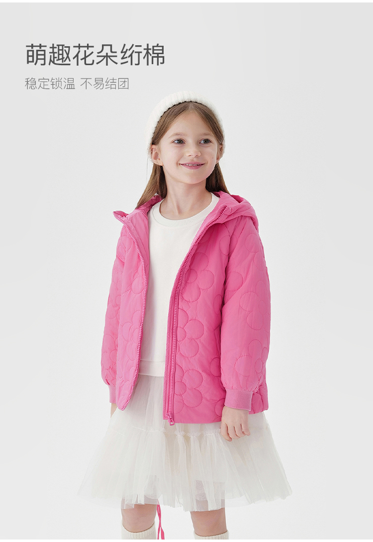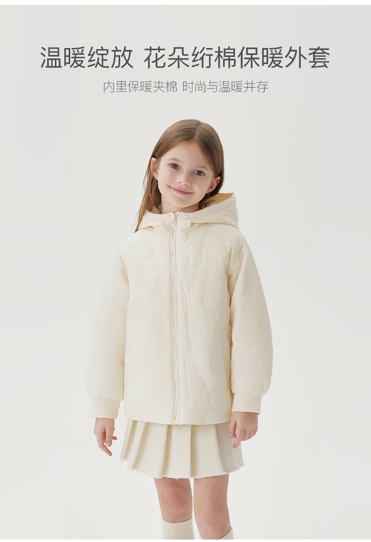 马克珍妮女童花朵连帽外套儿童薄棉棉衣宝宝2024年秋冬新款241201