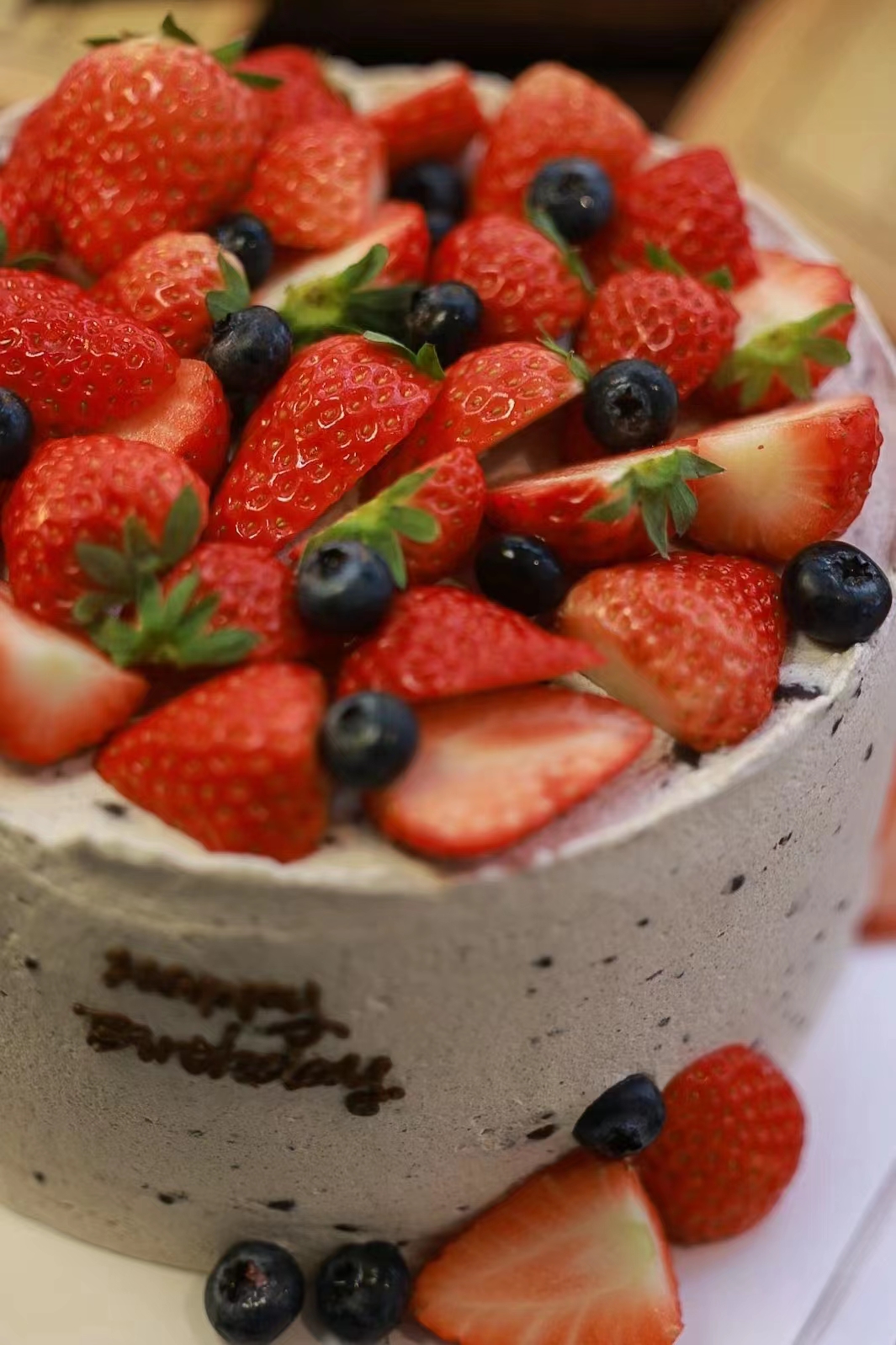 「食材」100%法国 / 新西兰动物奶油,乳酪戚风蛋糕,当季新鲜草莓。特调草莓果蓉,奥利奥,巧克力脆珠,法国薄脆片