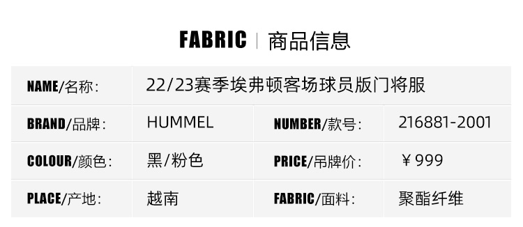 【含字章】SFS Hummel 22/23埃弗顿客场球员版门将服球衣皮克福德足球服