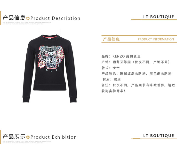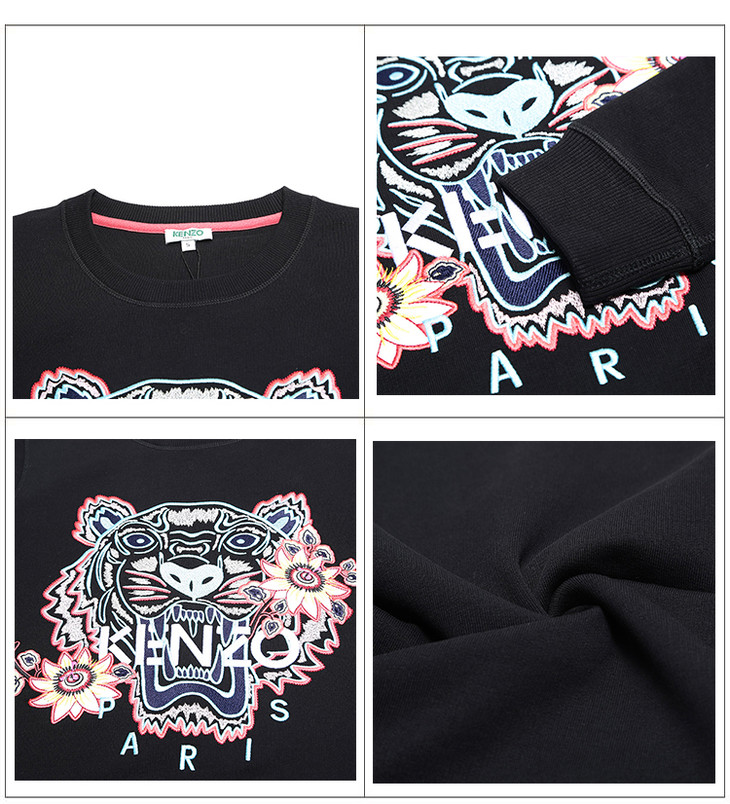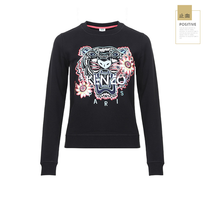 KENZO 高田贤三 女士黑色虎头刺绣棉质圆领长袖卫衣运动衫 F962 SW712 4XO 99