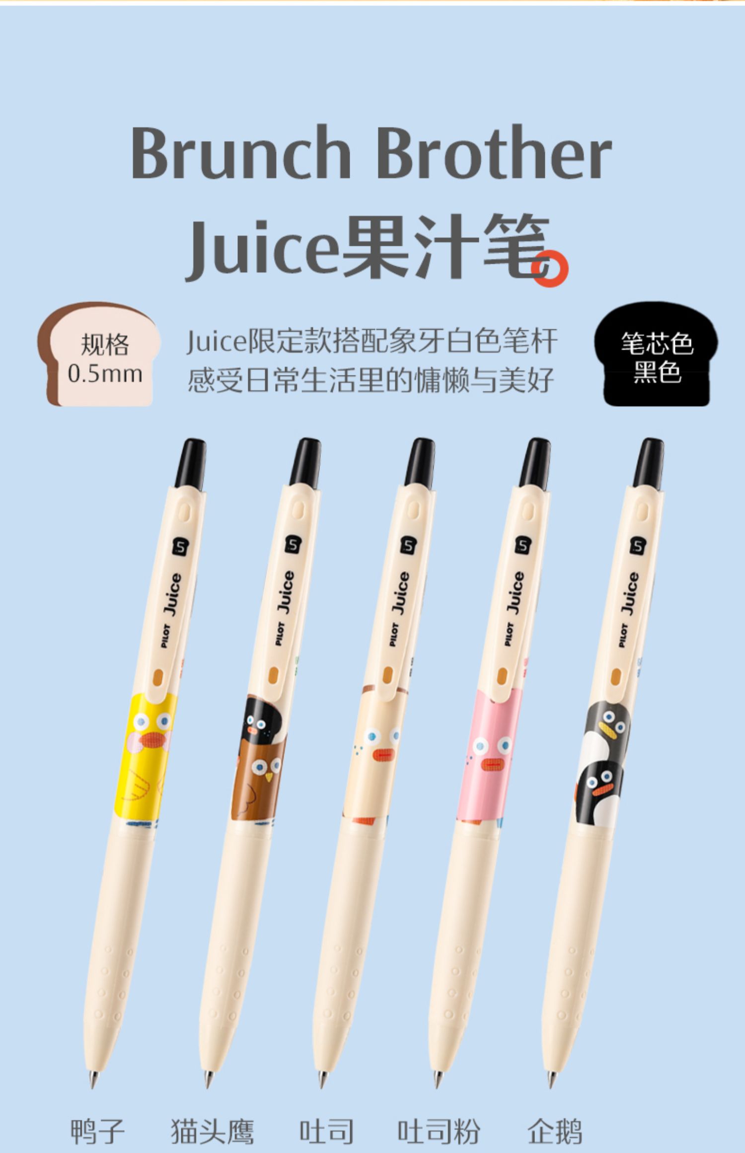 百乐juice up限定早餐兄弟BRUNCH BROTHER吐司果汁中性笔