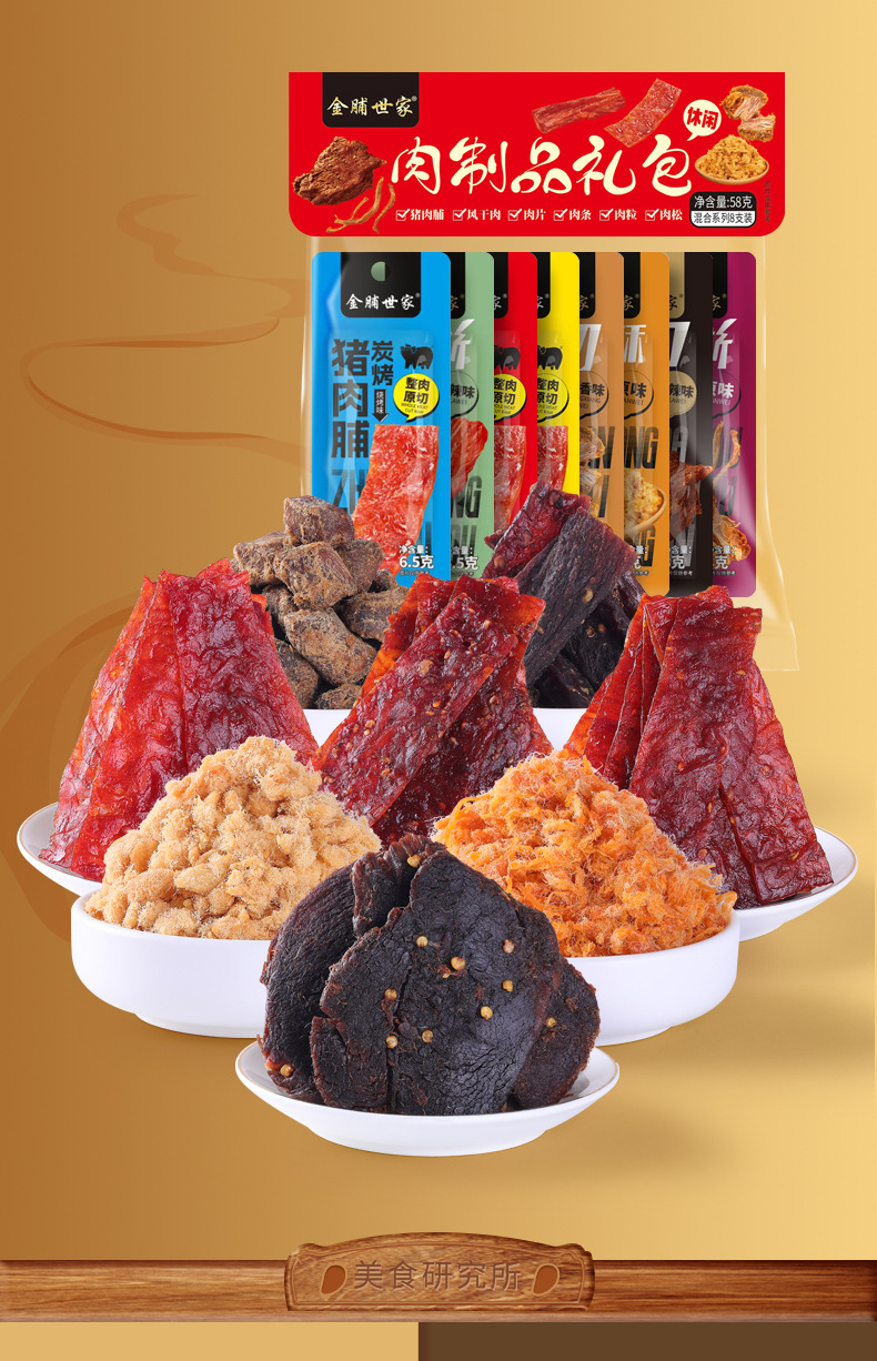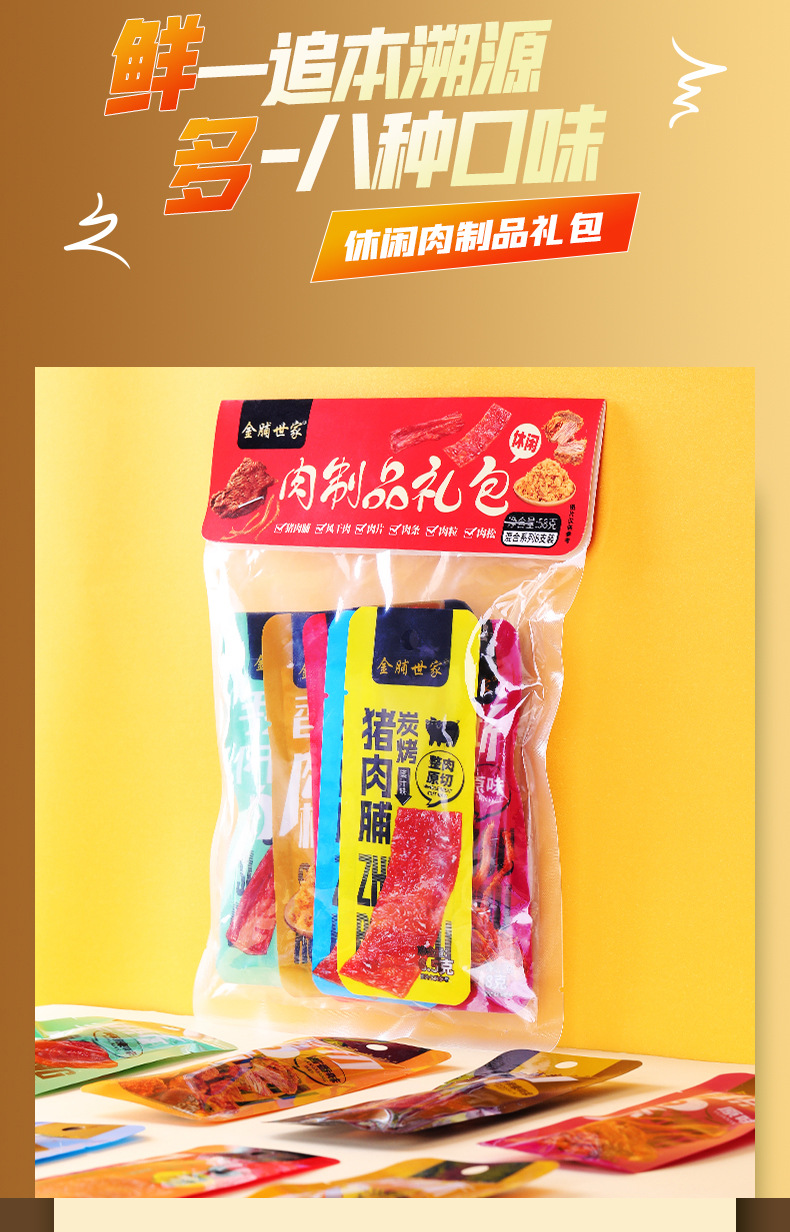 「8种口味!礼包装」多种肉制品礼包 肉松肉条手撕风干肉猪肉脯零食