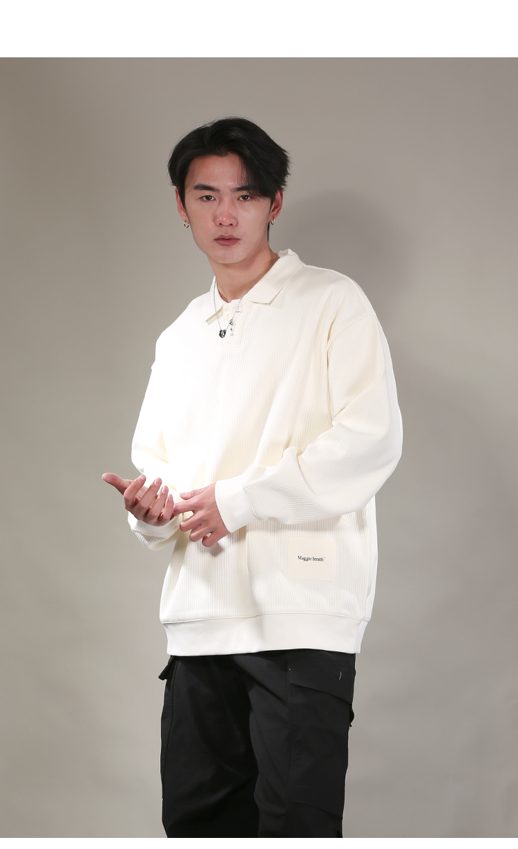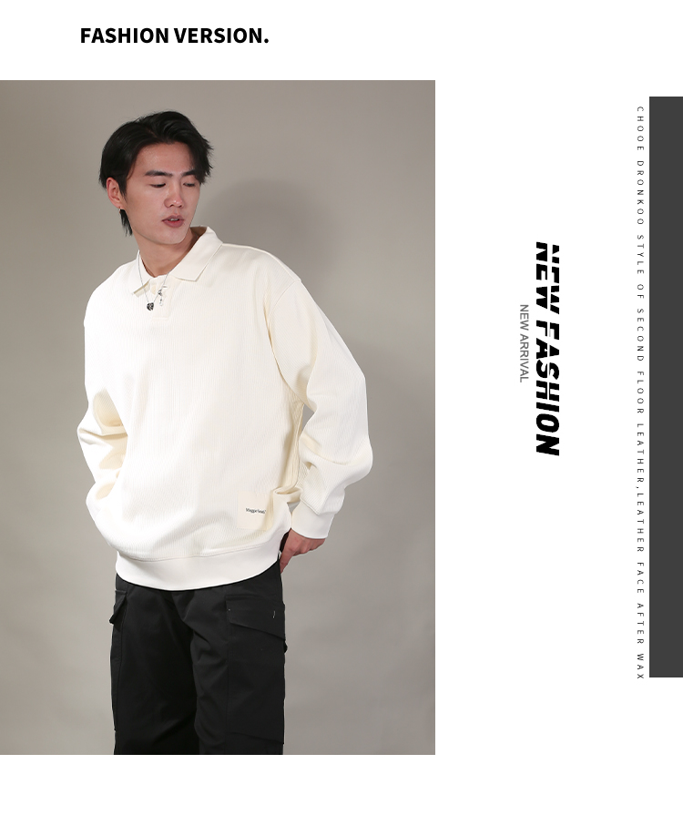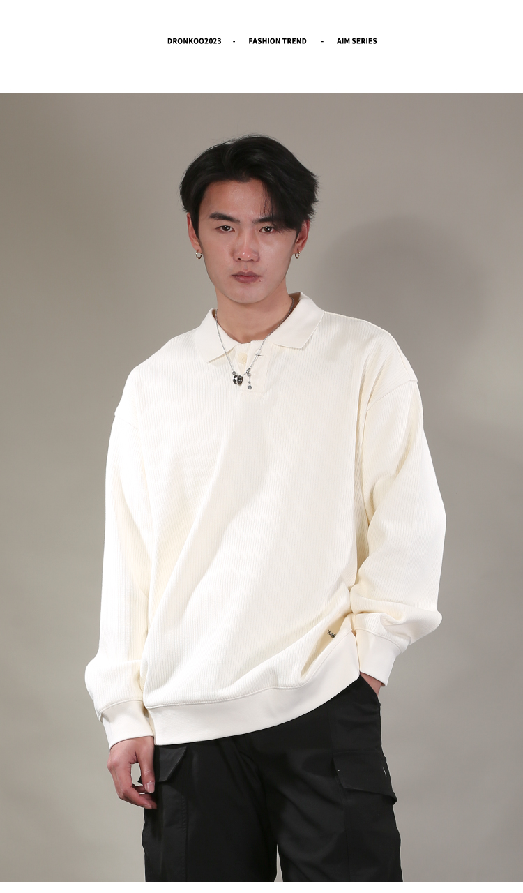 DRONKOO 2026 翻领单粒扣下摆同色方织唛中厚卫衣