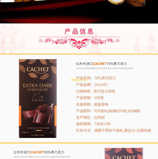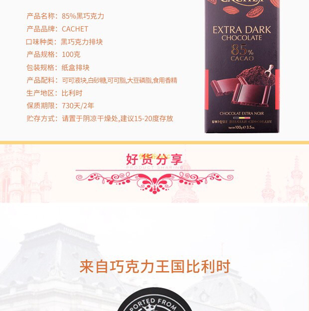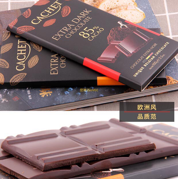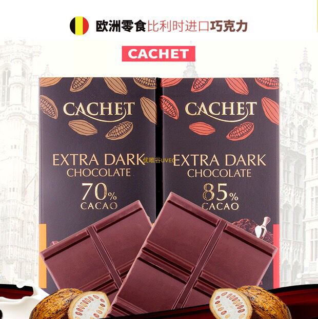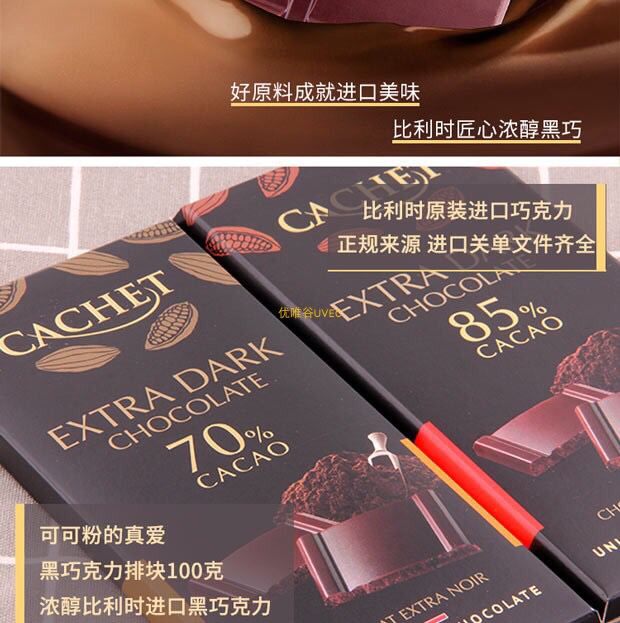 比利时进口-Cachet凯撒黑巧克力排块100g装-会员6折