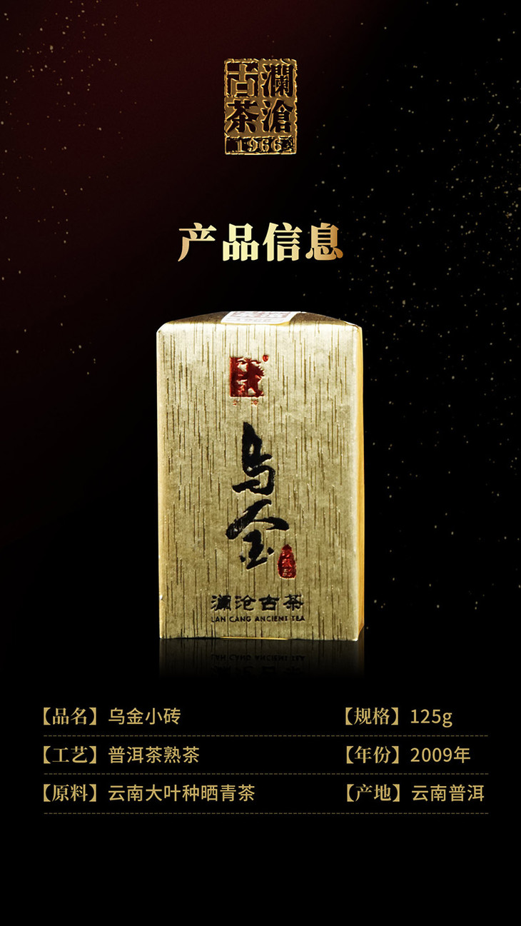 澜沧古茶 2009年乌金普洱熟茶砖茶 125g