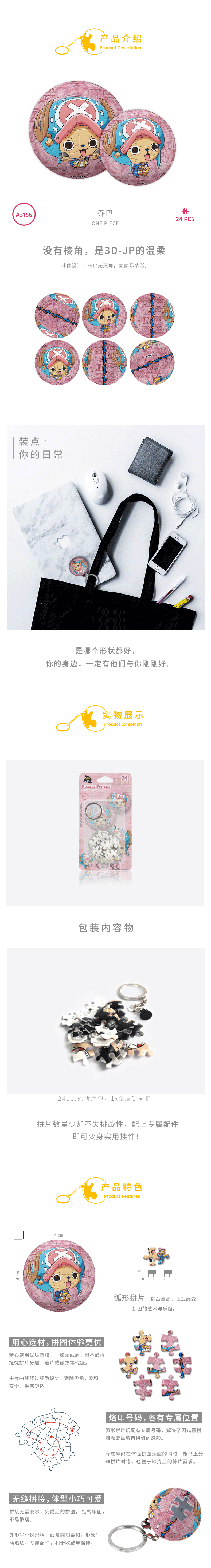 24片 钥匙扣拼图 塑料拼图 A3156 ONE PIECE-乔巴