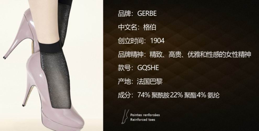 Gerbe格伯 100%法国进口女士短袜 女丝袜 GQSHE 53d