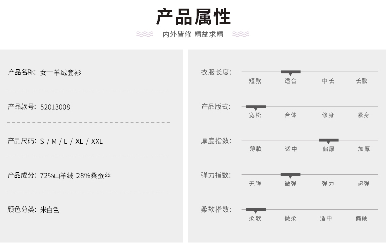 | 材质成分: 山羊绒(羊绒)72% 桑蚕丝28% |