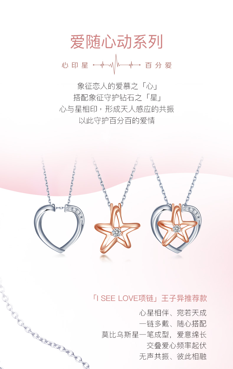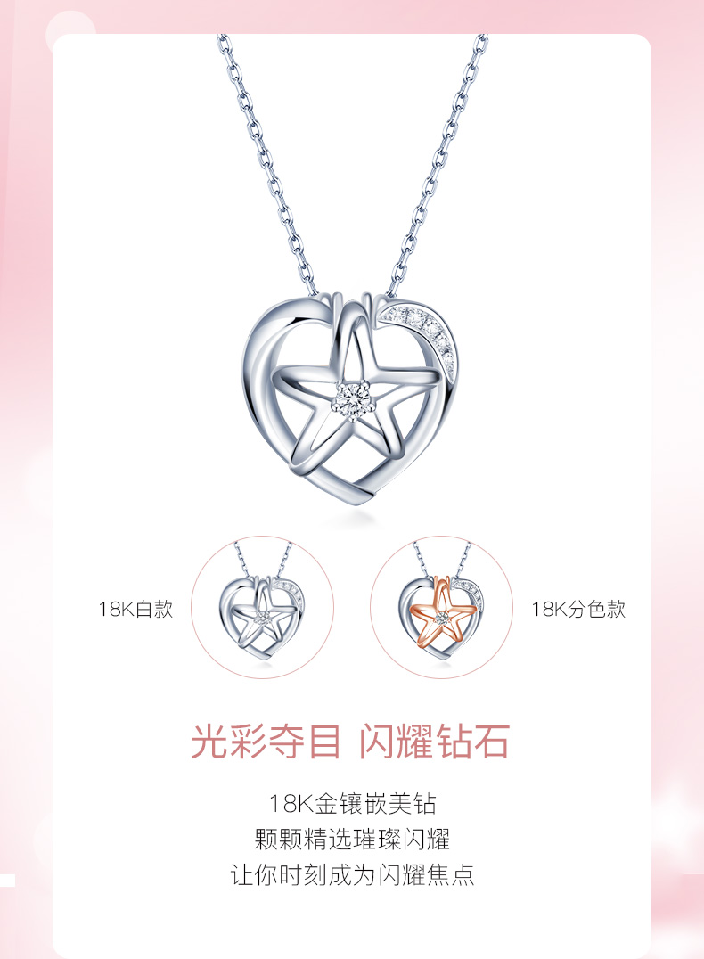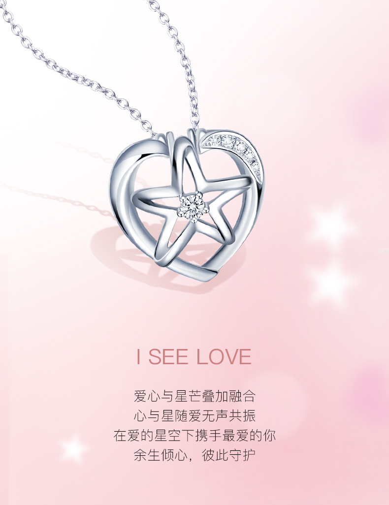 「LOVE STAR」I SEE LOVE明星推荐款18K金钻石项链 星星爱心套链