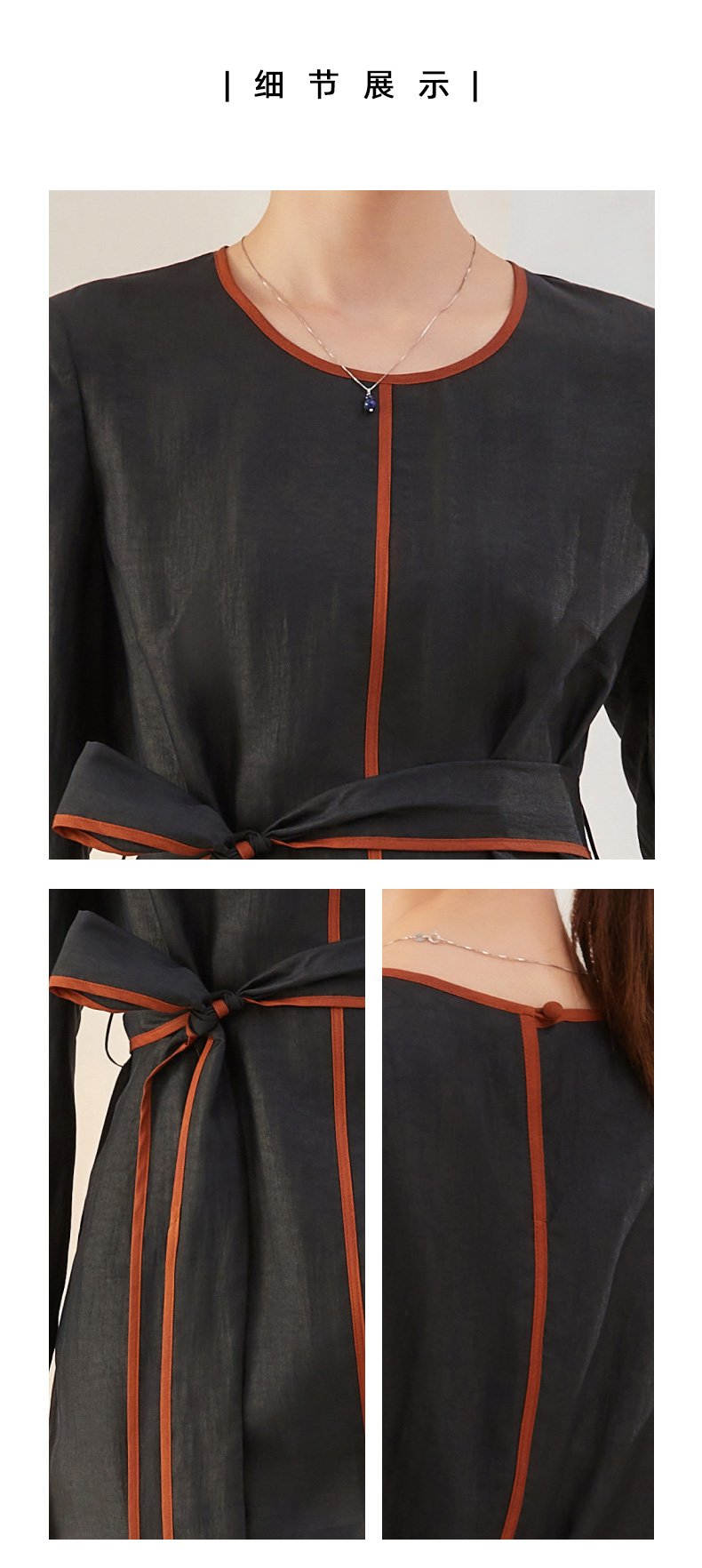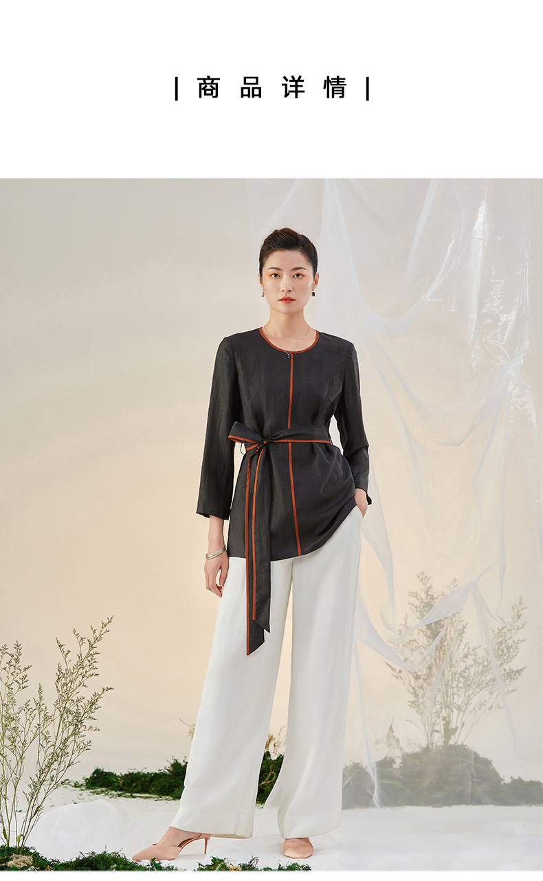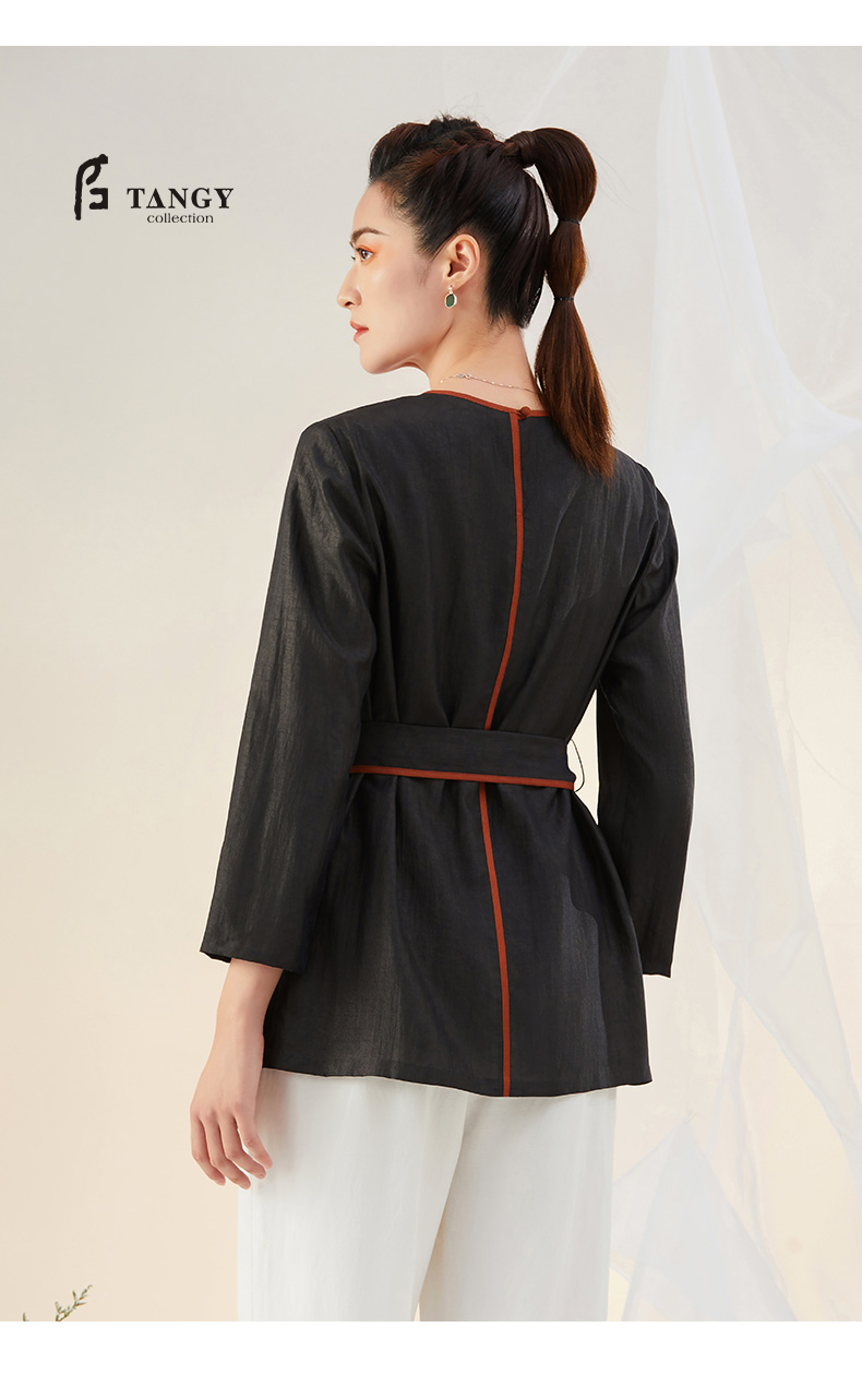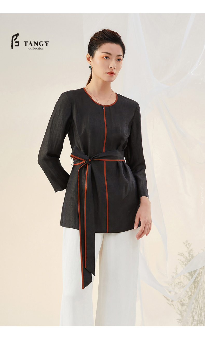TANGY Collection/天意精品2021年秋冬新品真丝撞色莨绸香云纱T恤