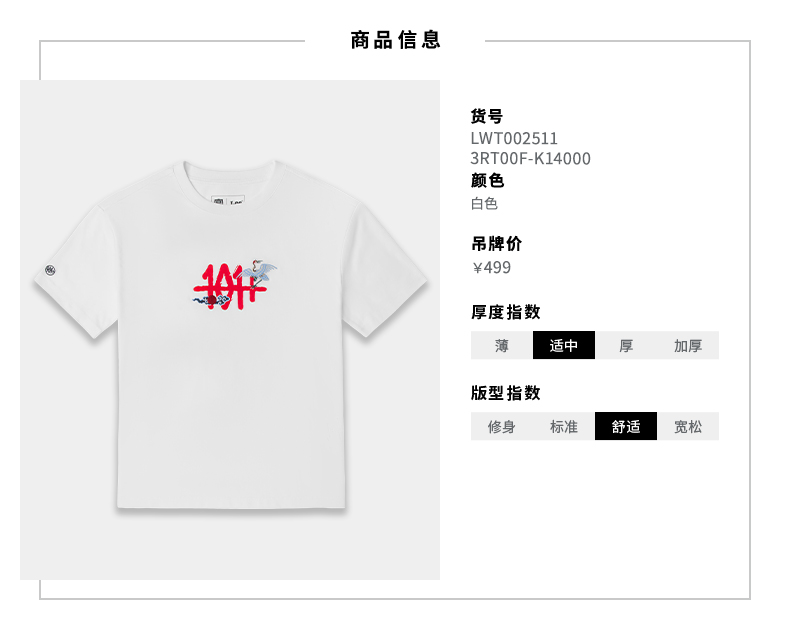 Lee宫廷文化“一品云鹤”潮服22春夏新品舒适女短袖T恤LWT0025113RT00FK14000
