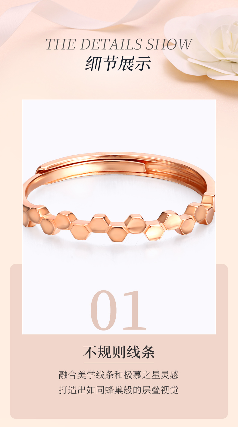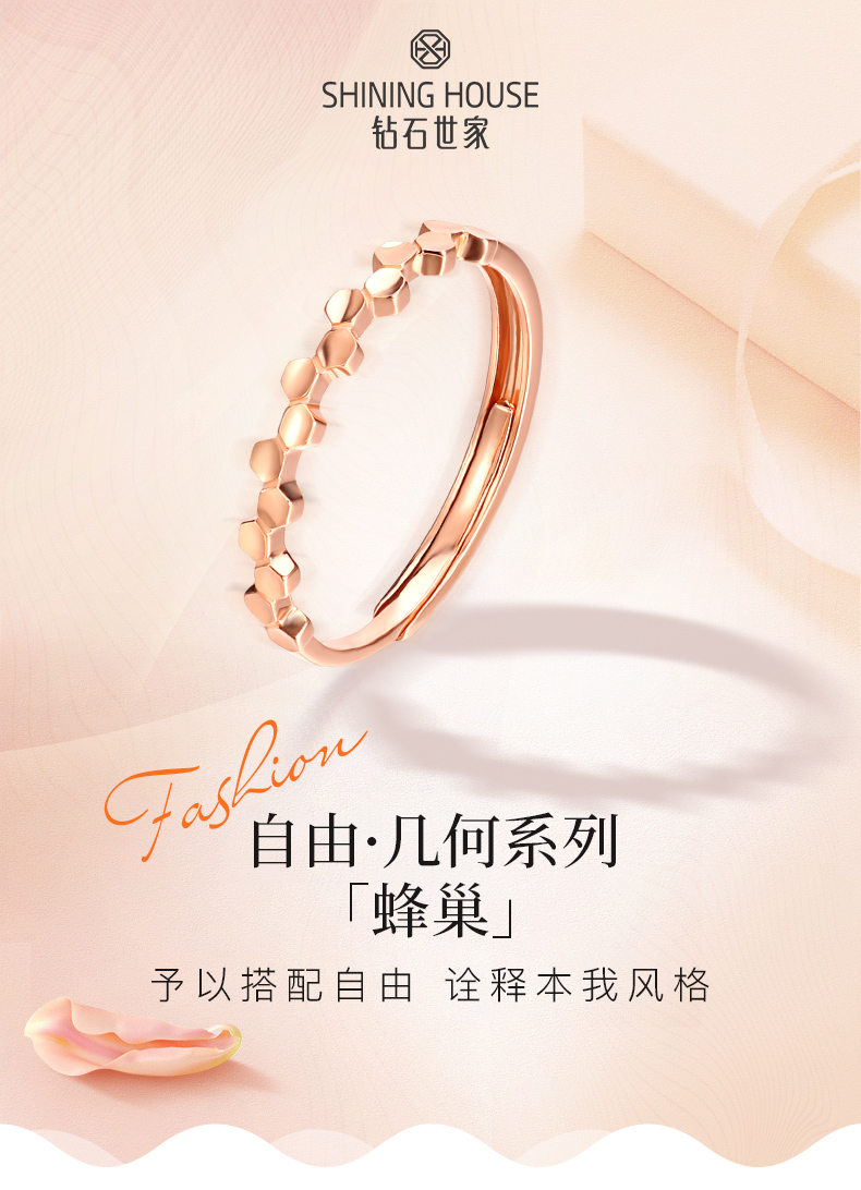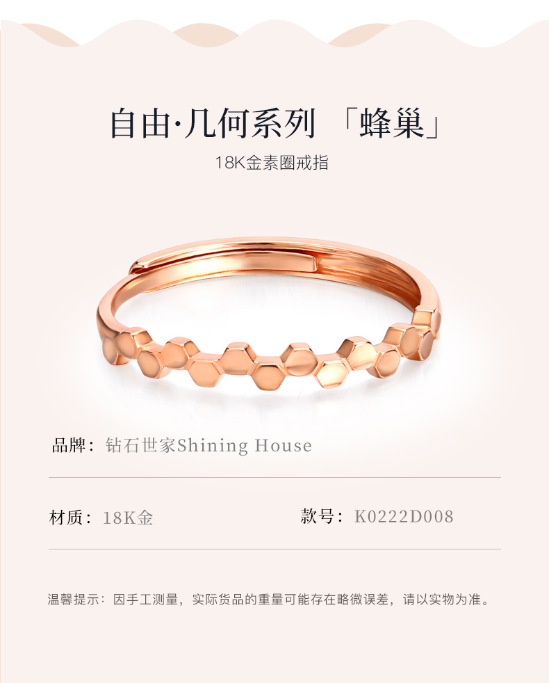 【时尚K金】钻石世家18K金新品时尚波点素金女戒(约1.51±0.1克)