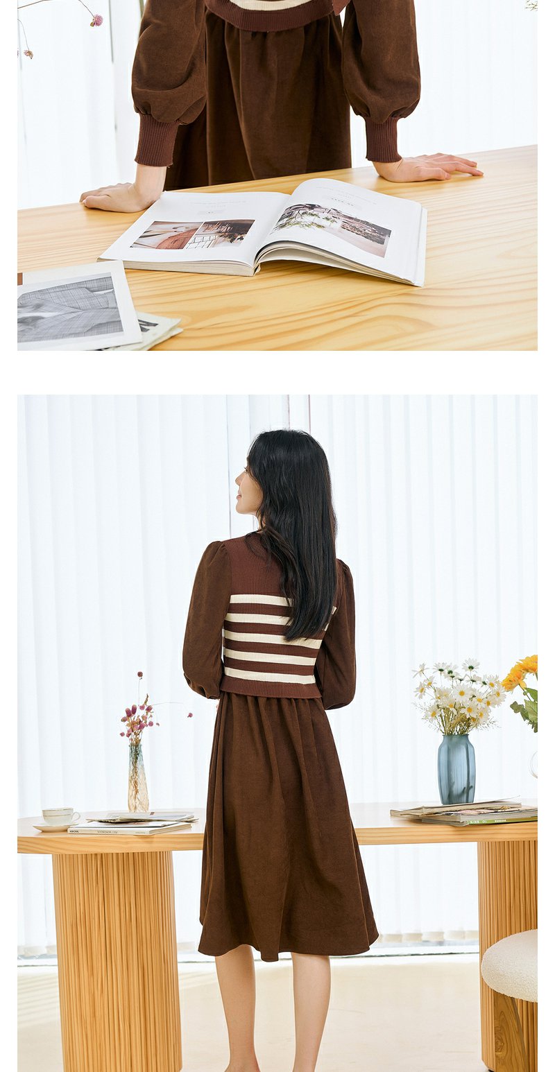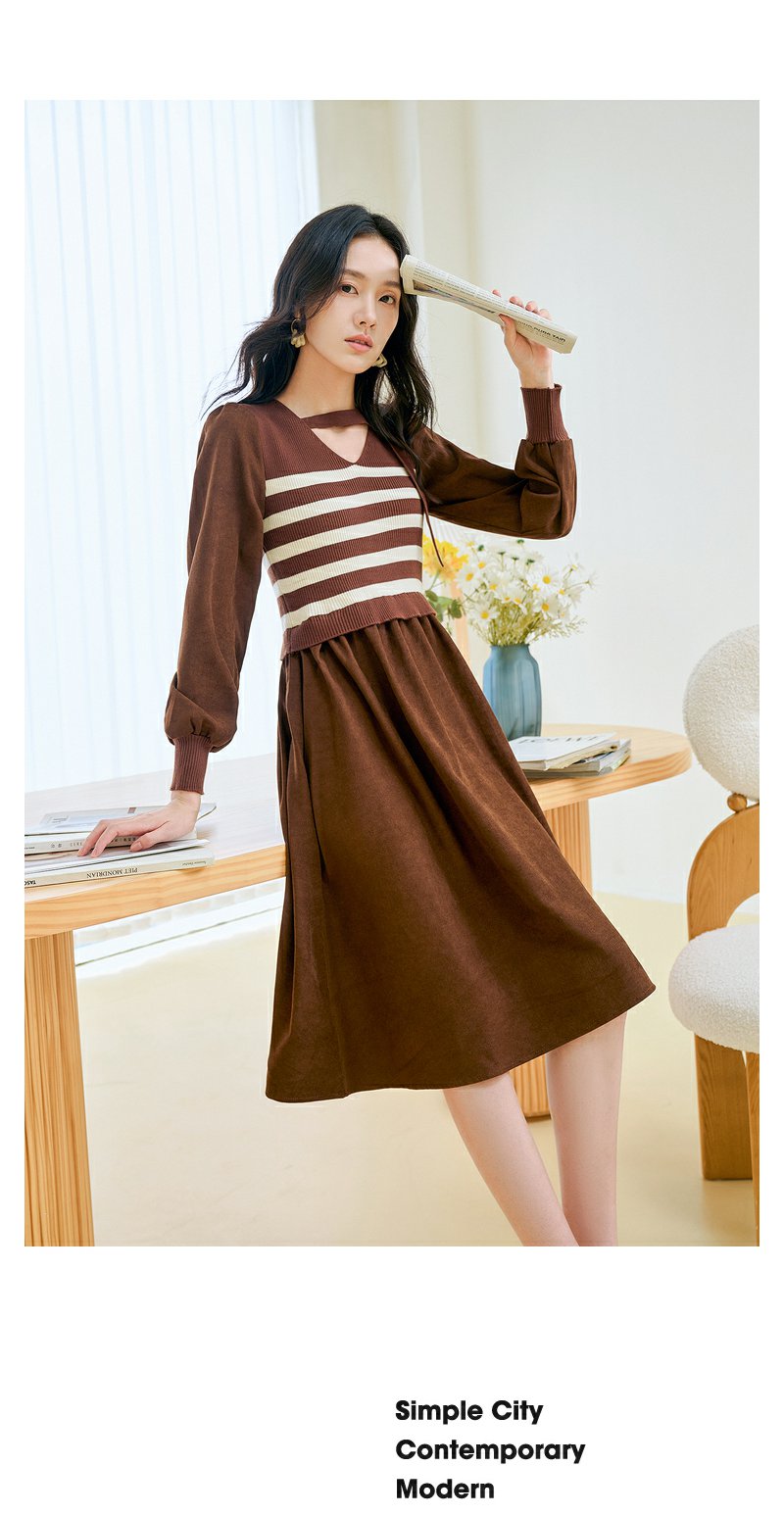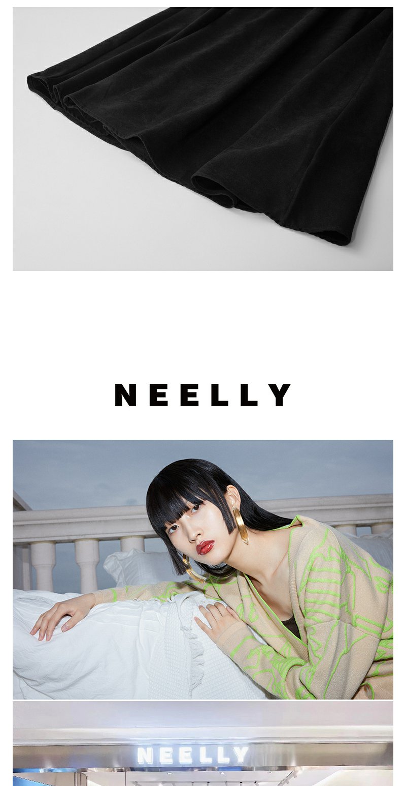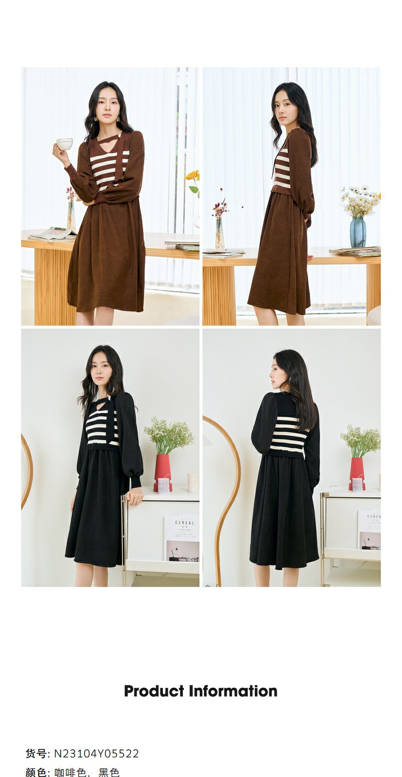 NEELLY纳俪条纹撞色连衣裙女秋冬新款中长款休闲气质内搭打底长裙N23104Y05522