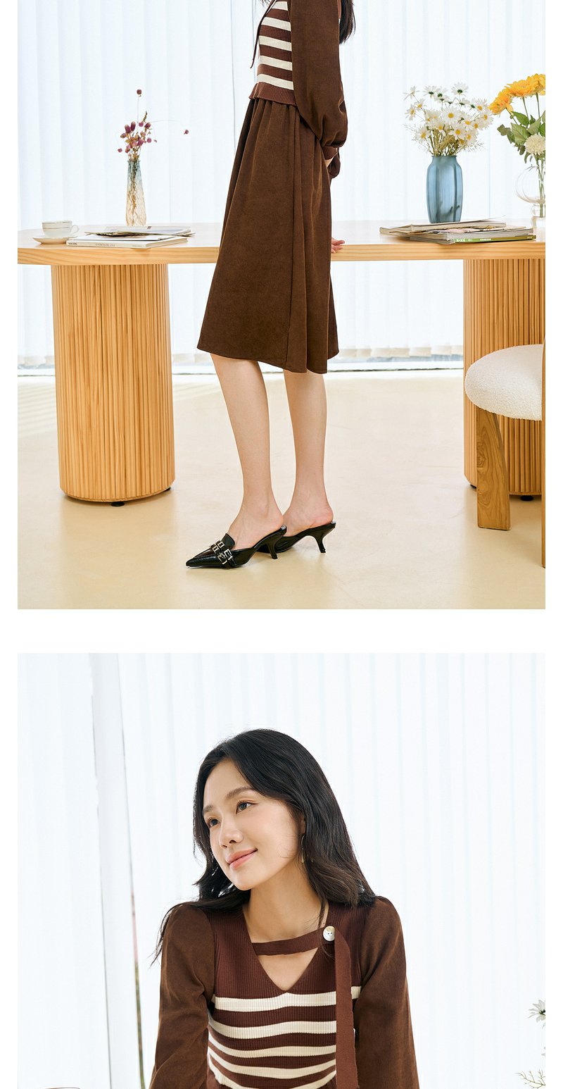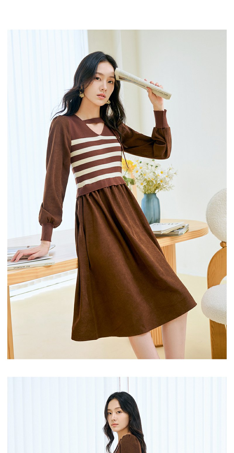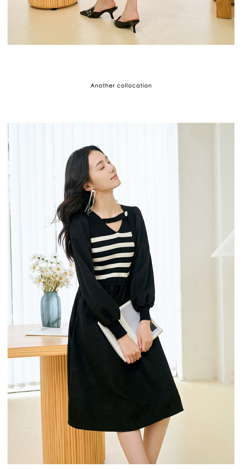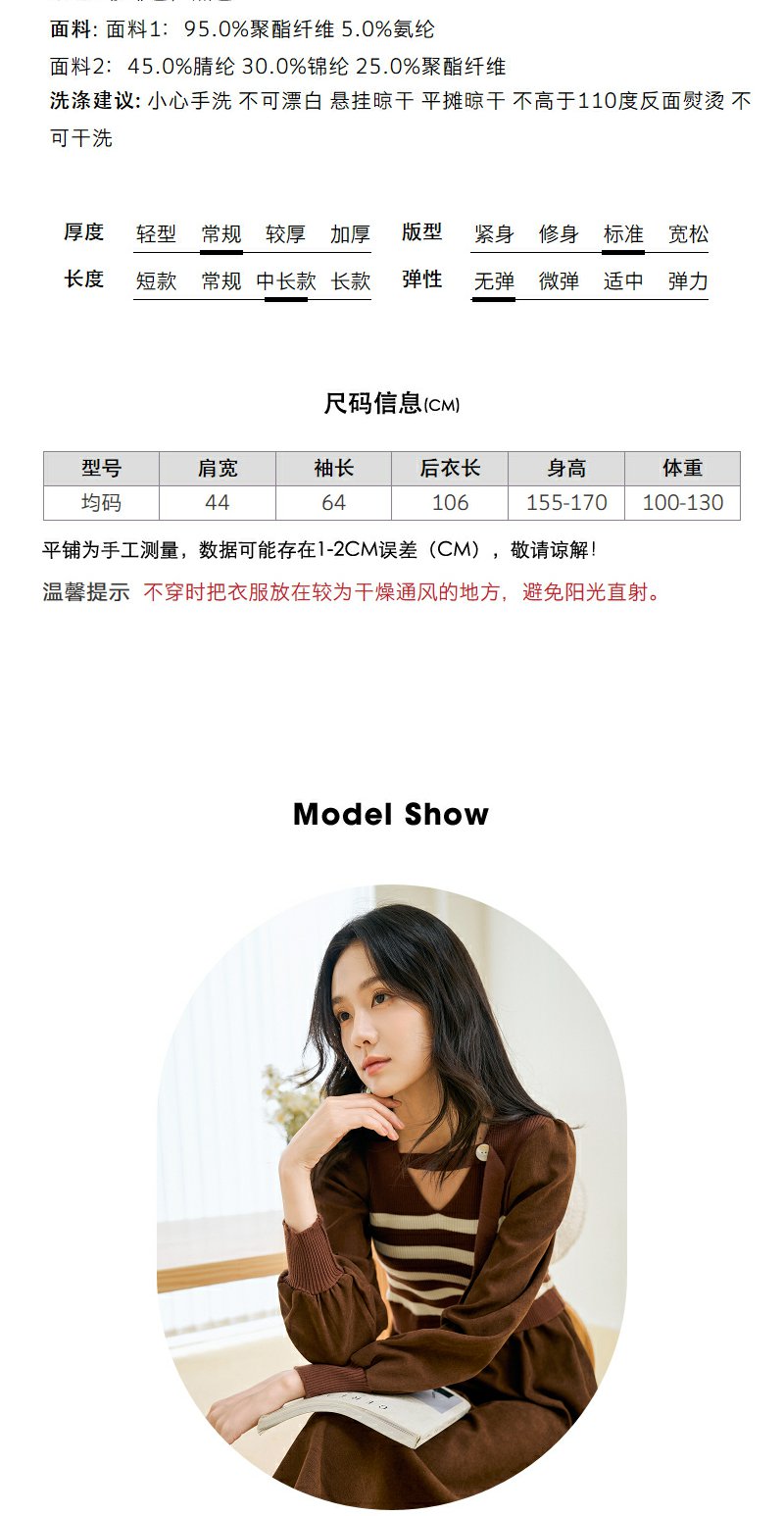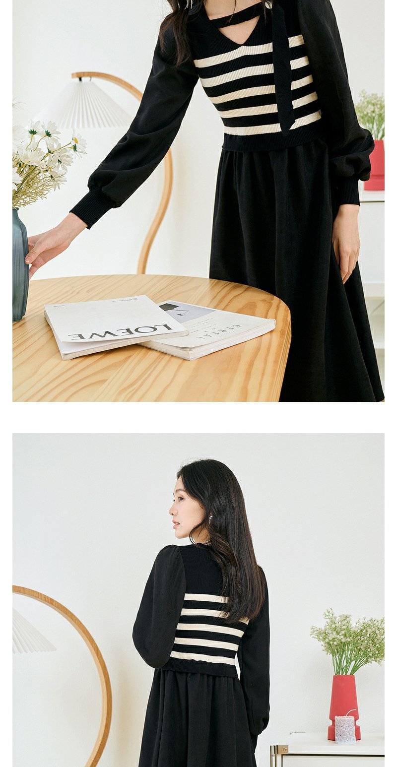 NEELLY纳俪条纹撞色连衣裙女秋冬新款中长款休闲气质内搭打底长裙N23104Y05522
