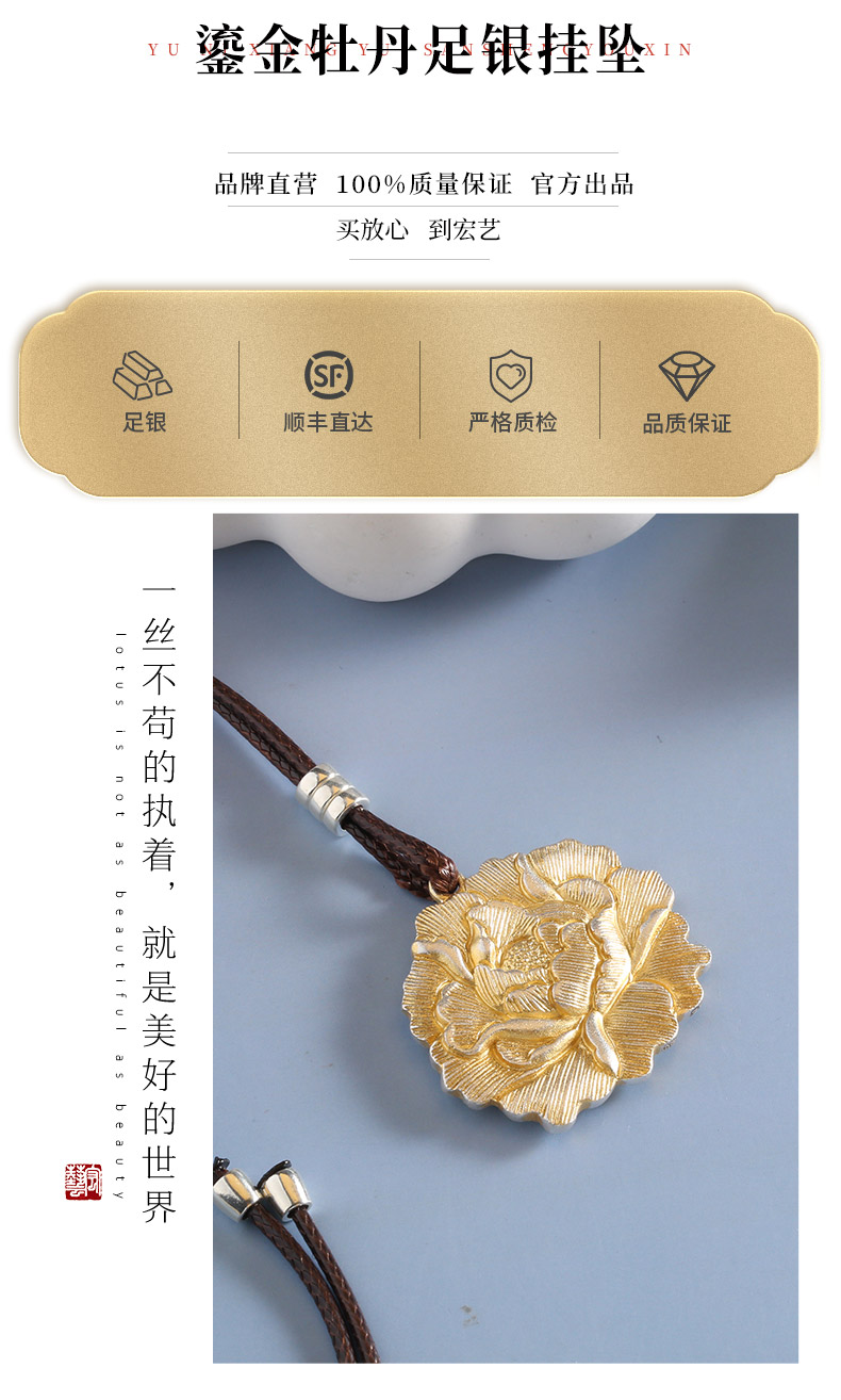 【宏艺珠宝】鎏金牡丹·足银挂坠