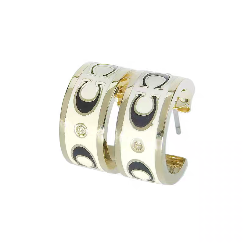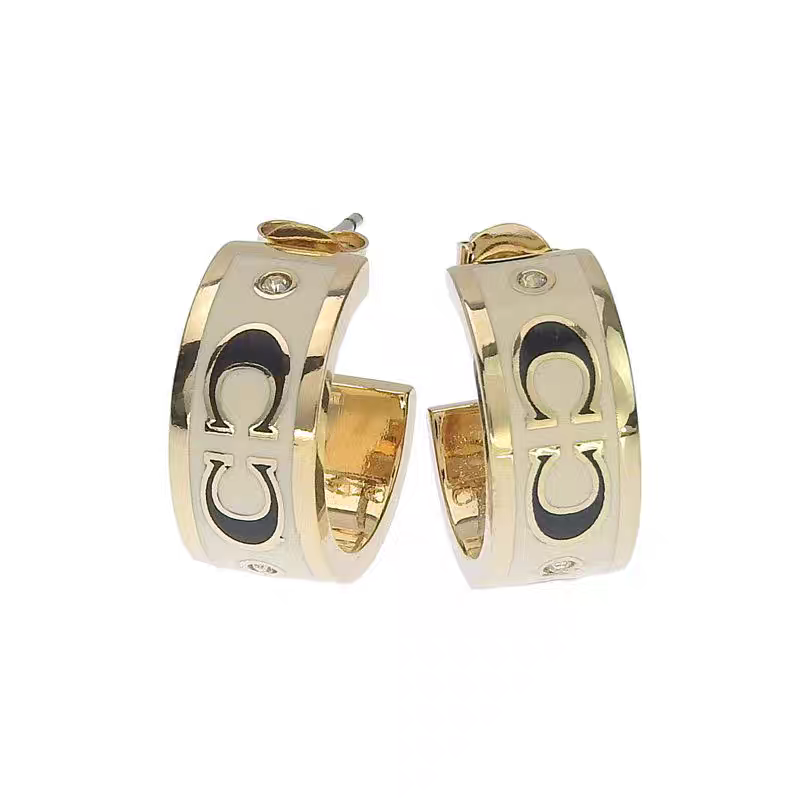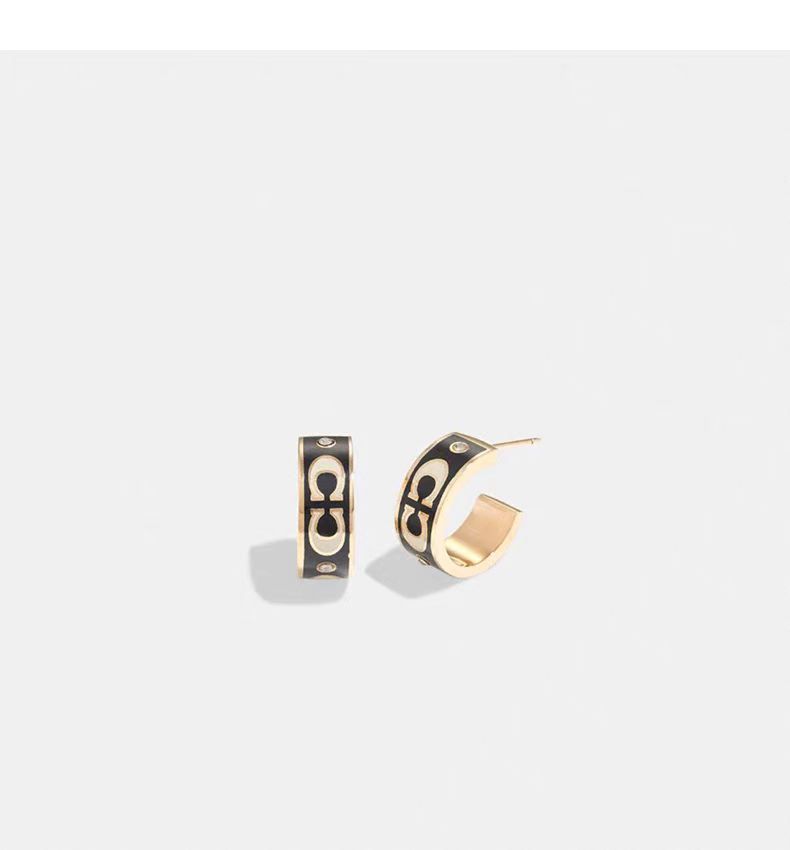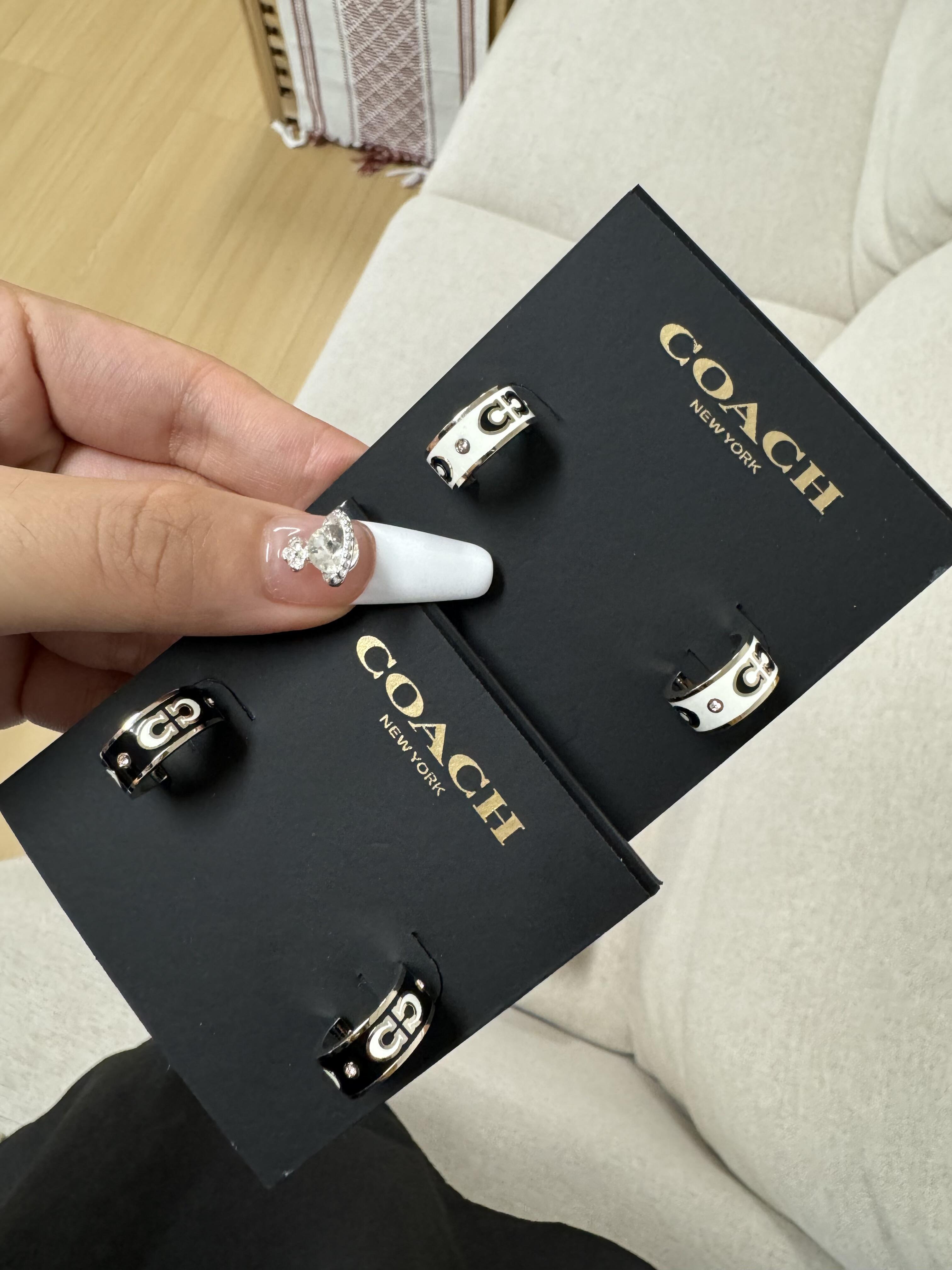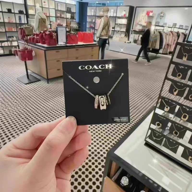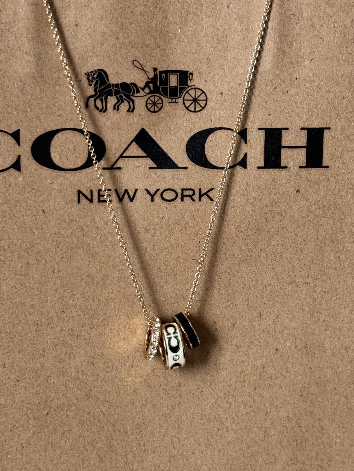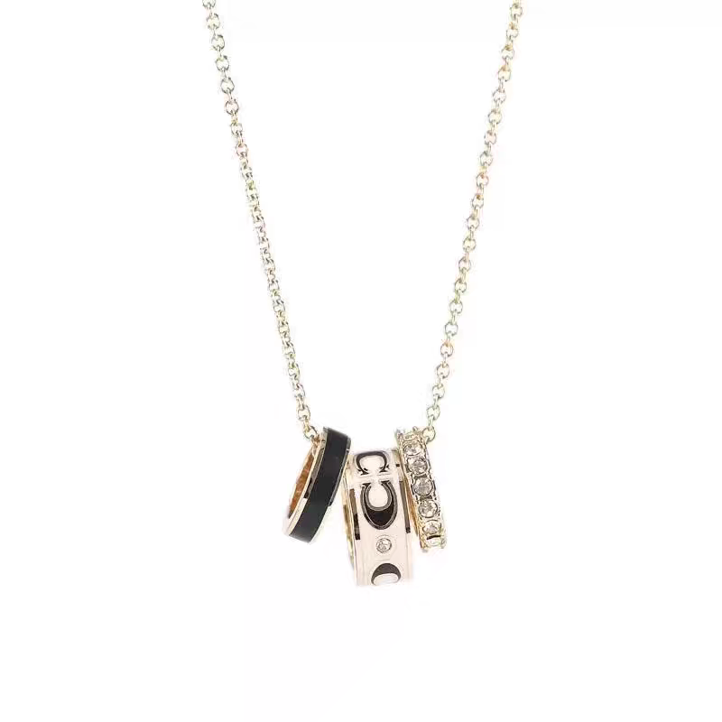 【品牌授权】COACH蔻驰奥莱潮流高奢饰品项链/耳钉 手镯 黑金 白金 三环带钻项链 白金 黑金单字C标耳环