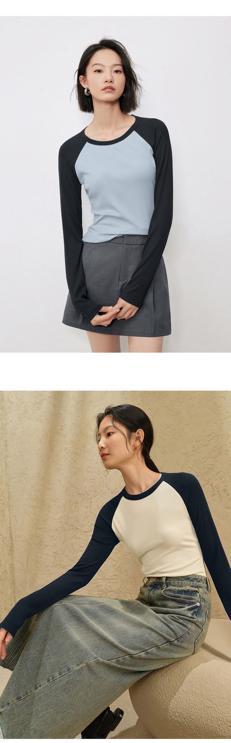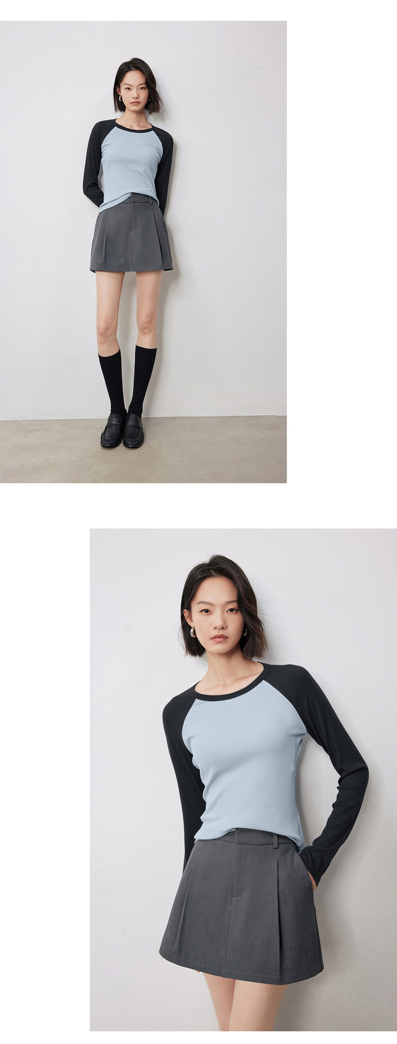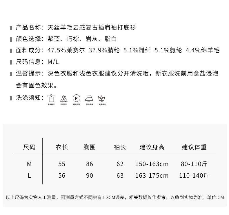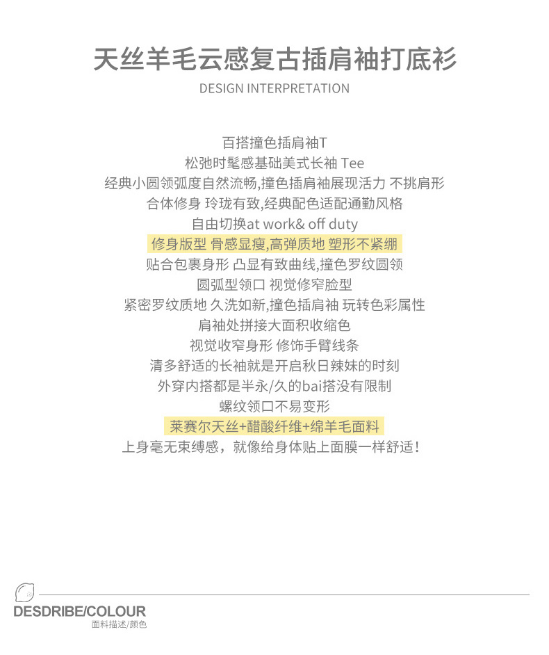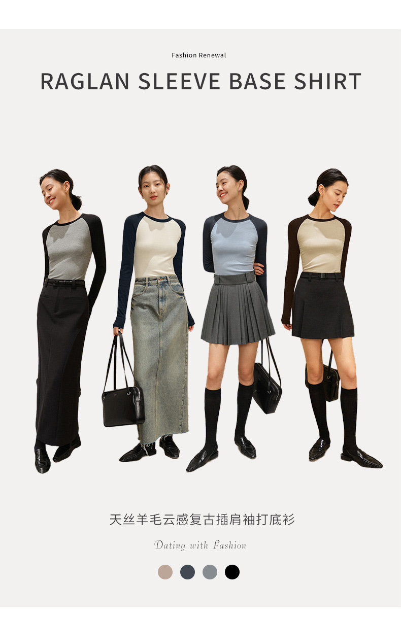 【3-5天发】天丝羊毛云复古插肩袖打底衫
