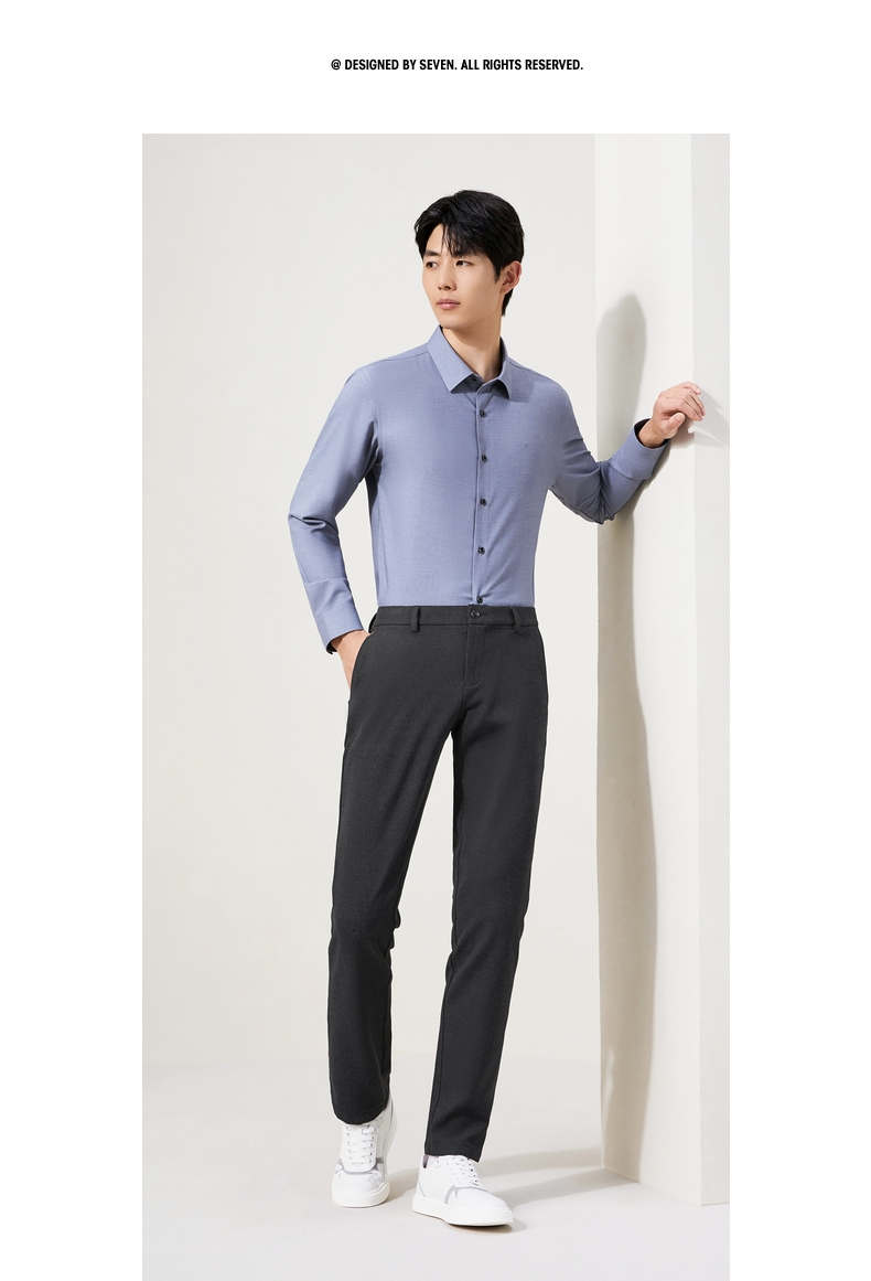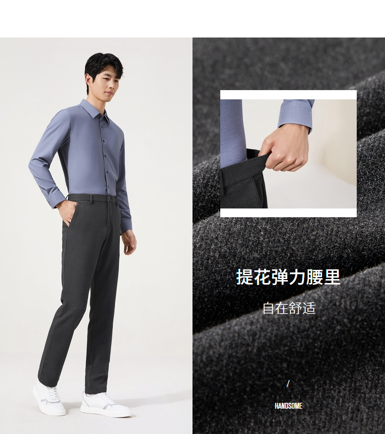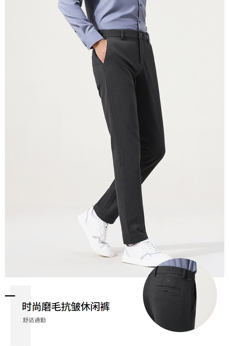 【双面磨毛】柒牌休闲长裤男士秋季新款修身直筒保暖长裤商务裤子129H73000