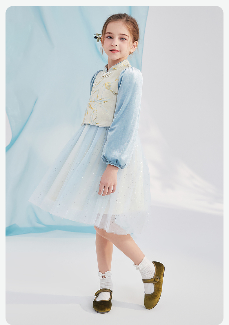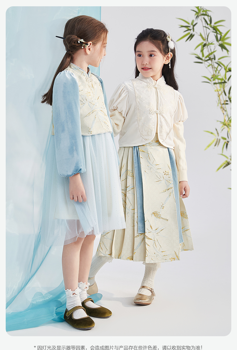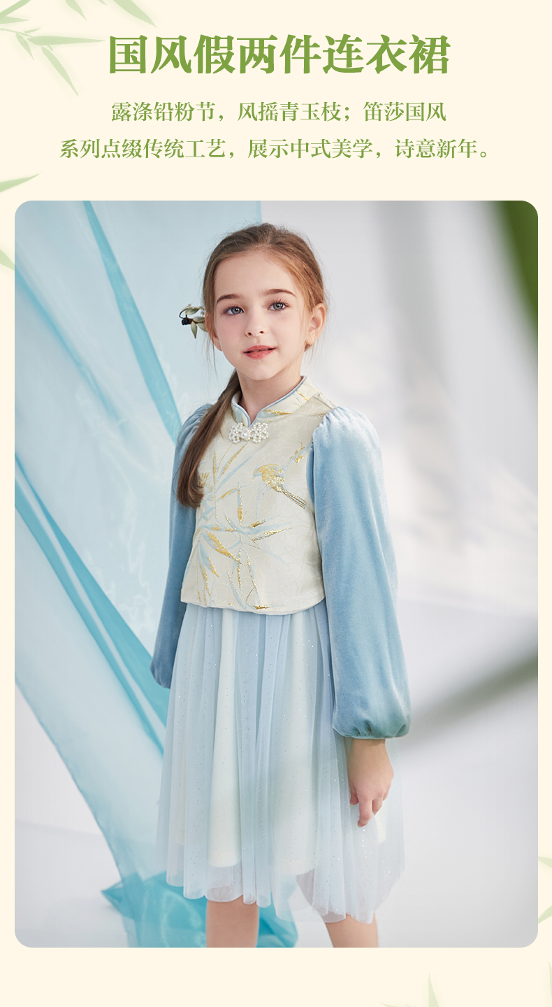 笛莎Deesha 童装女童套装2023新款国风假两件连衣裙