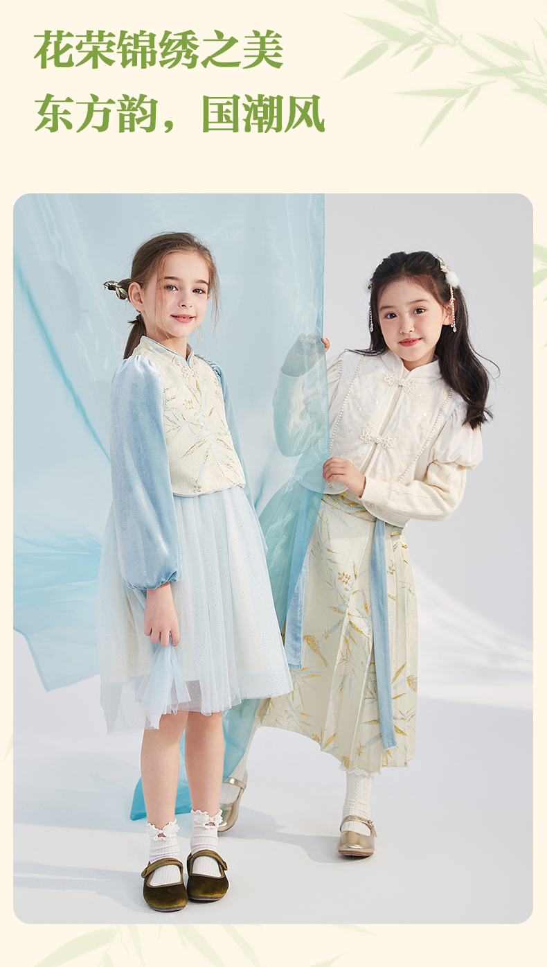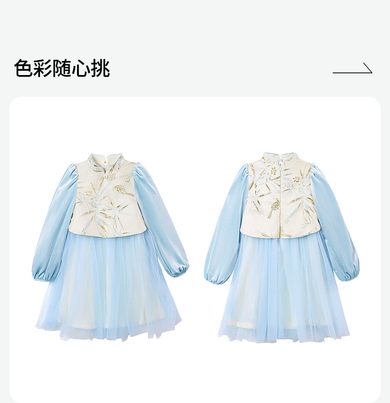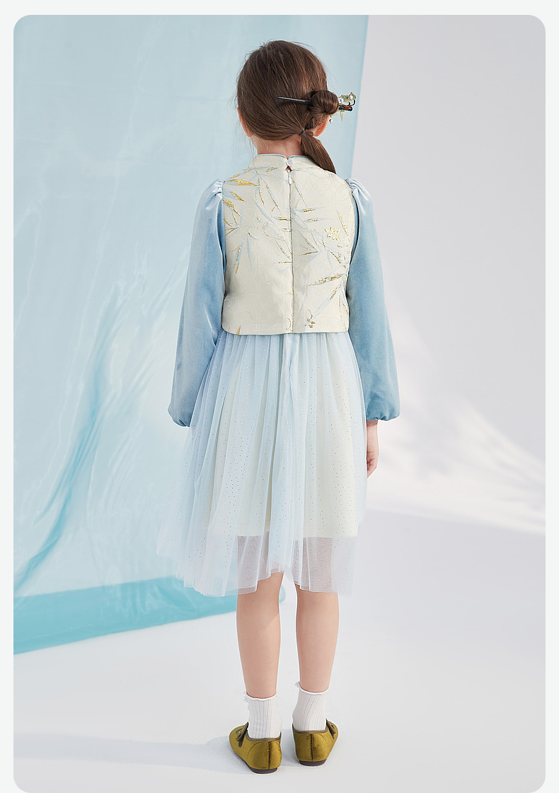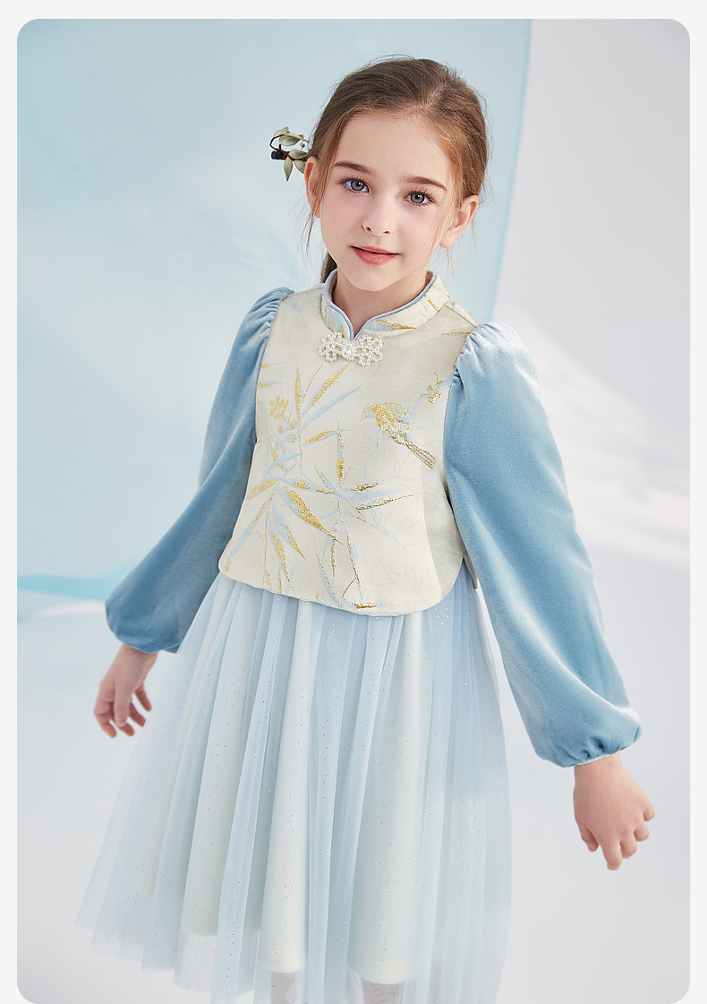 笛莎Deesha 童装女童套装2023新款国风假两件连衣裙
