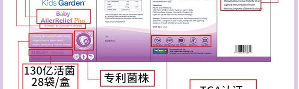 【保税】英国 兰骑士(Sun Seasons)好鼻子PLUS益生菌粉剂 3g*28条/盒