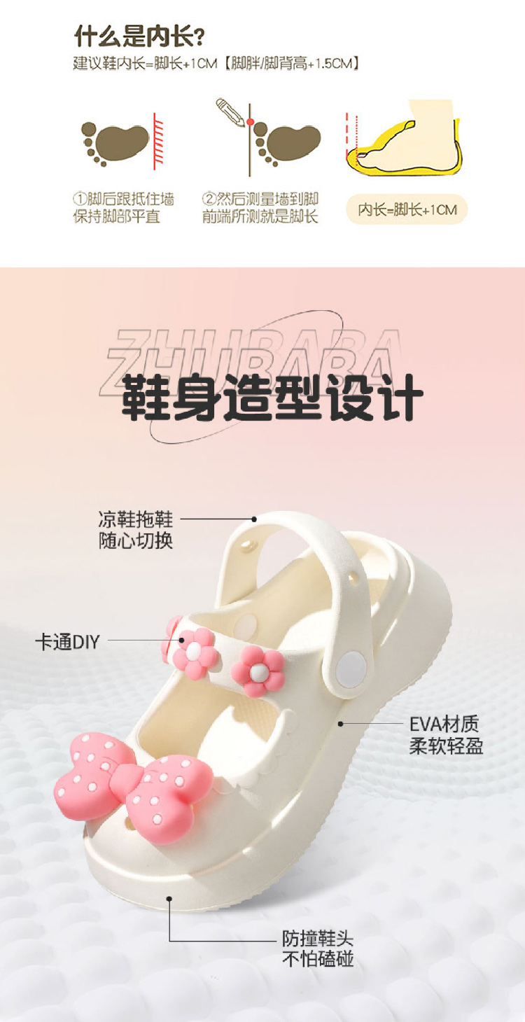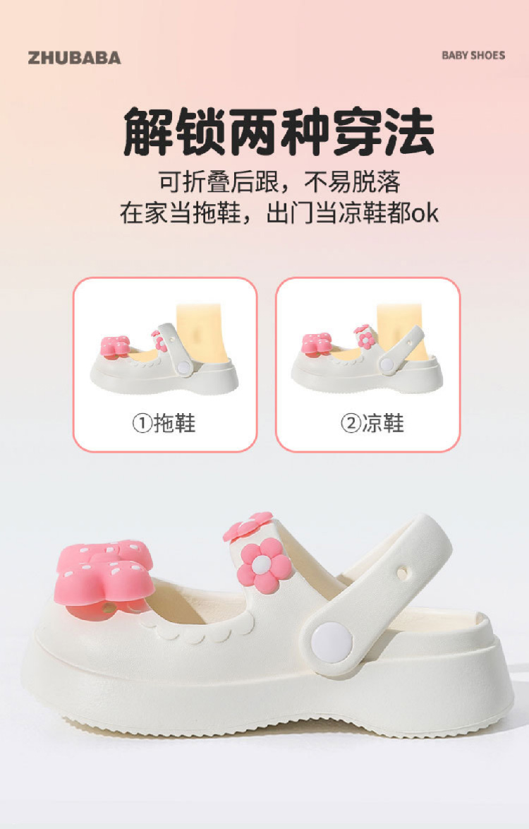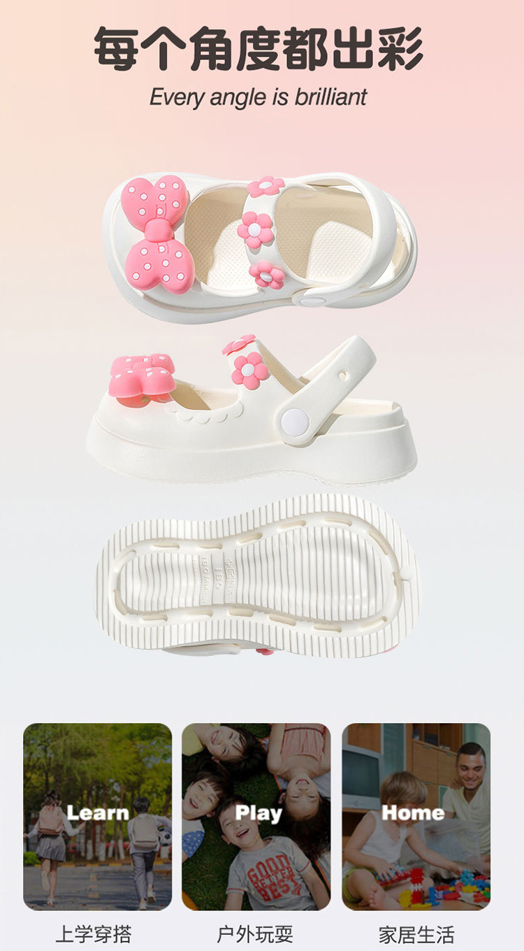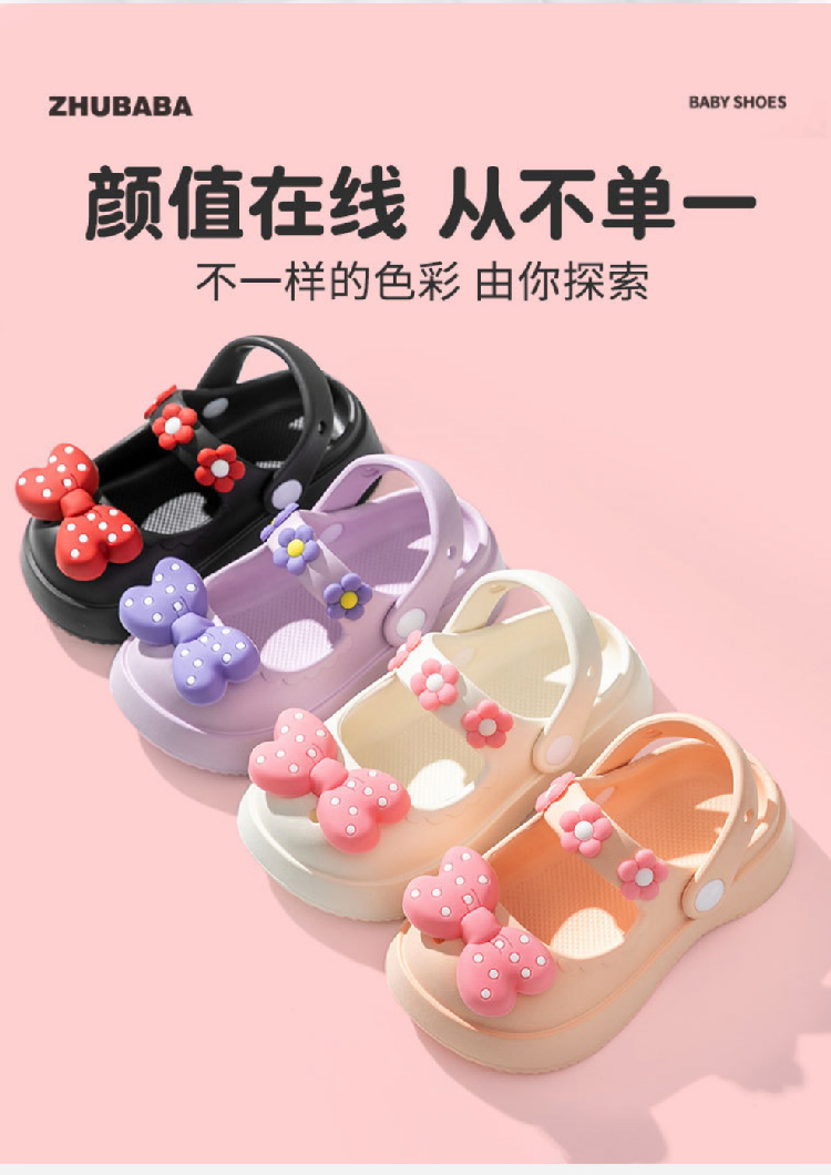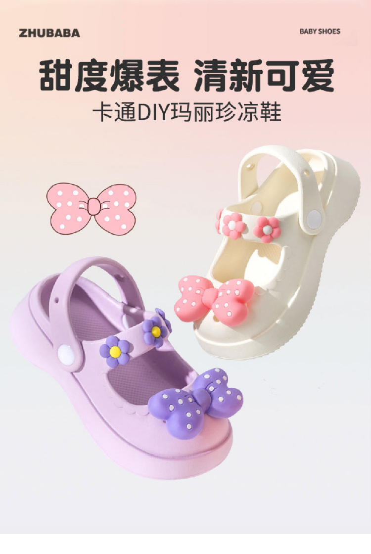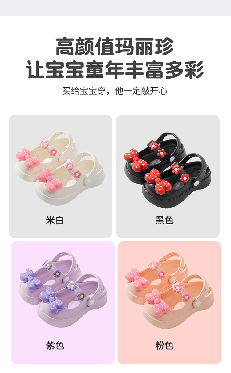 【玛丽珍儿童拖鞋】夏季女童可爱蝴蝶结洞洞鞋 室内凉拖鞋亲子包头凉鞋